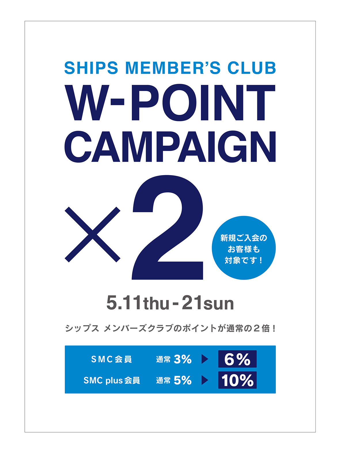 SHIPS MEMBER’S CLUB W-POINT CAMPAIGNを開催致しております。
