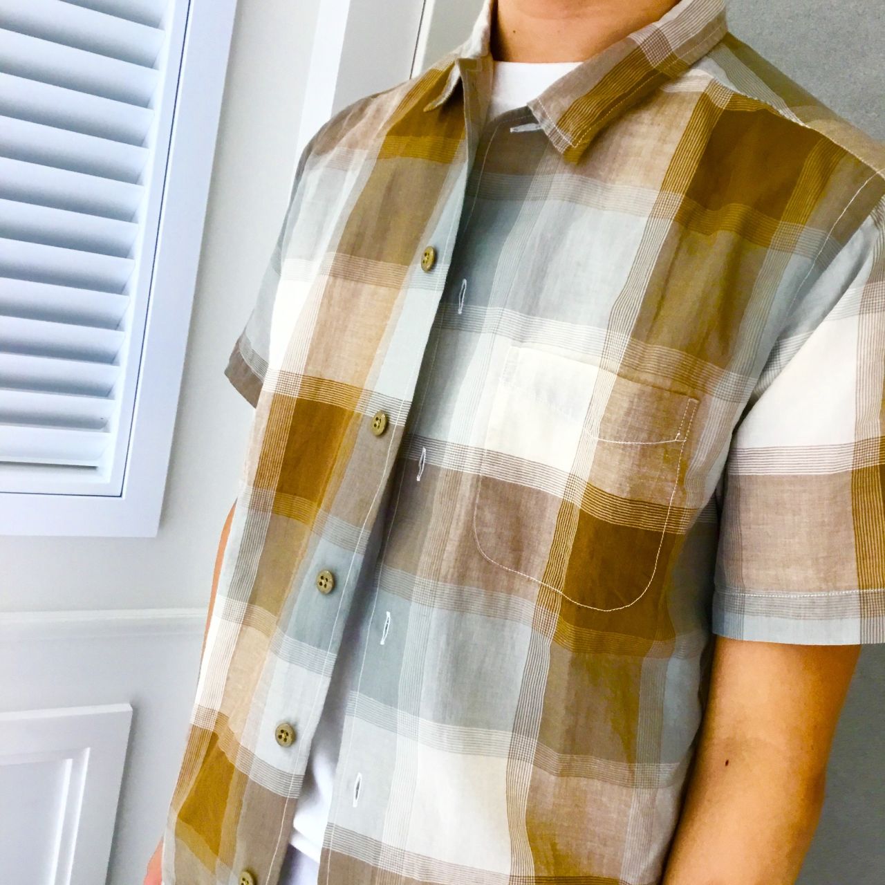 大柄のチェックが目を惹くこちらのシャツは
