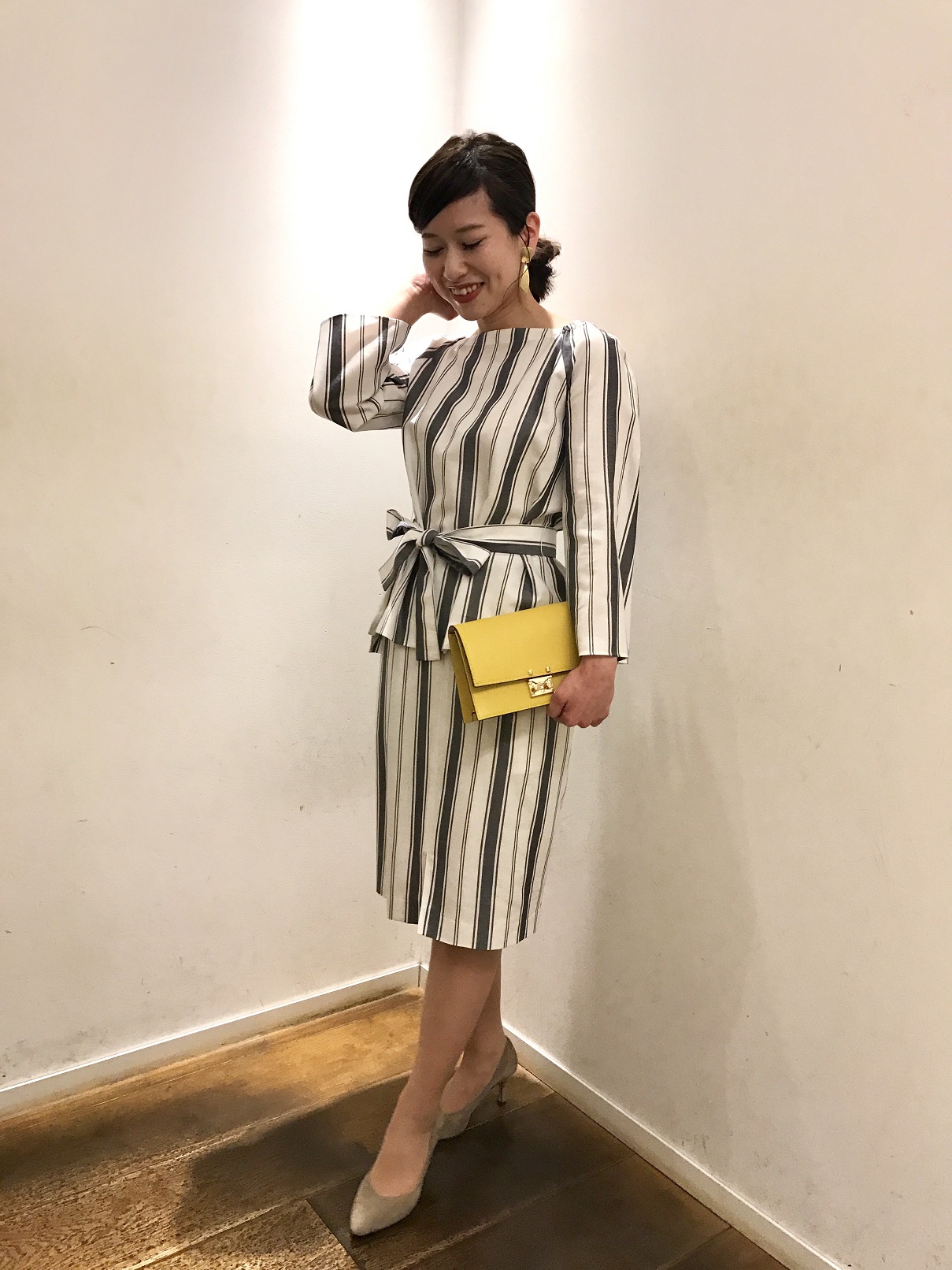 ウエストリボンが全身のバランスを取りやすくしてくれるので