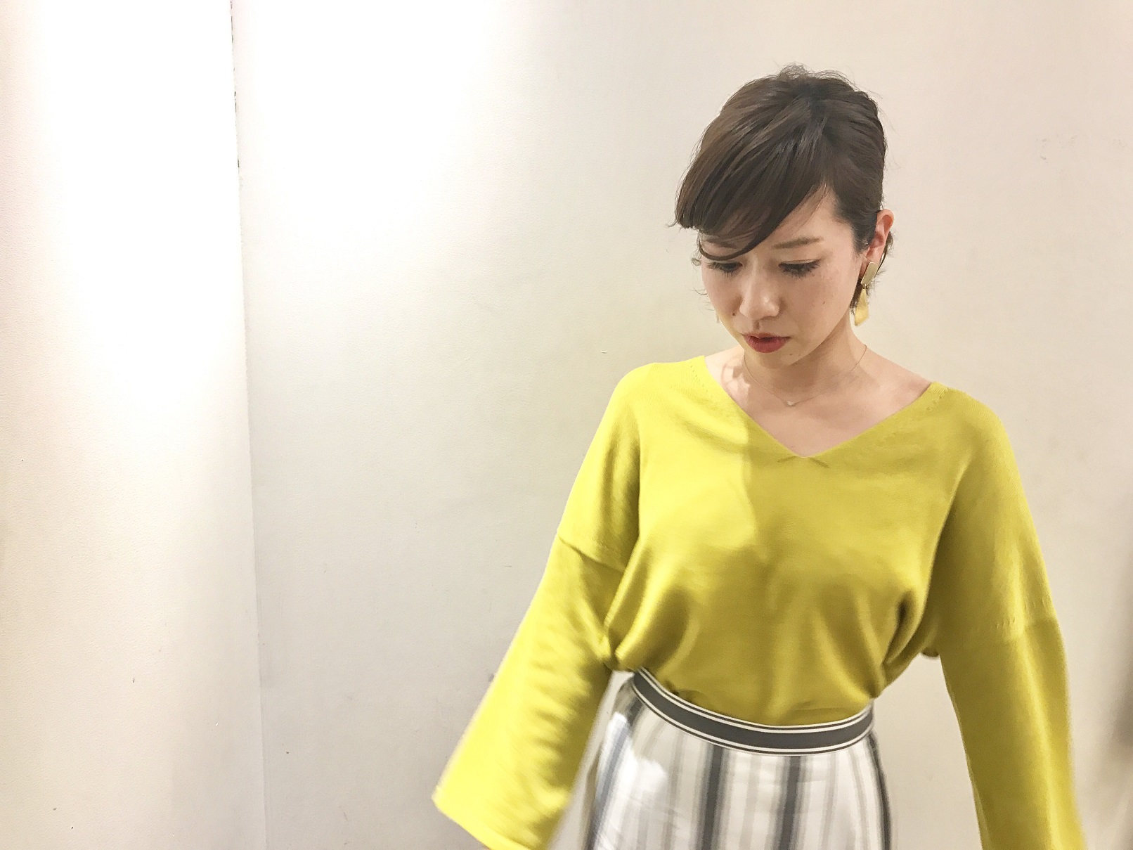 カラーニットと合わせて更に春らしく、、、