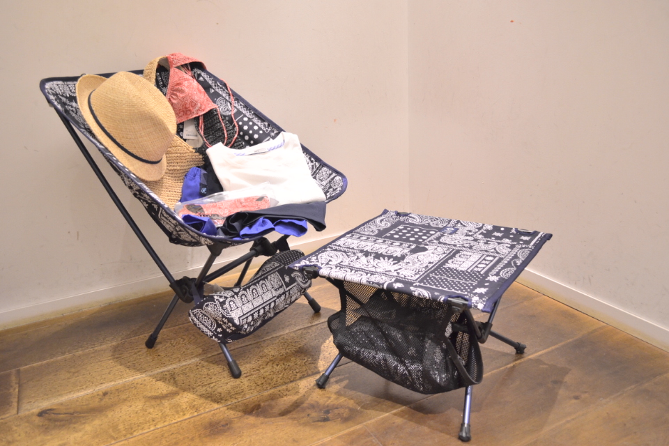 HELINOX SHIPS別注ランダムペイズリー タクティカルチェアテーブル 品番:110-93-0942 ¥18,000(+TAX)イケてるペイズリー柄のチェアに腰掛けてバドワイザーをプシュッとしちゃってください。