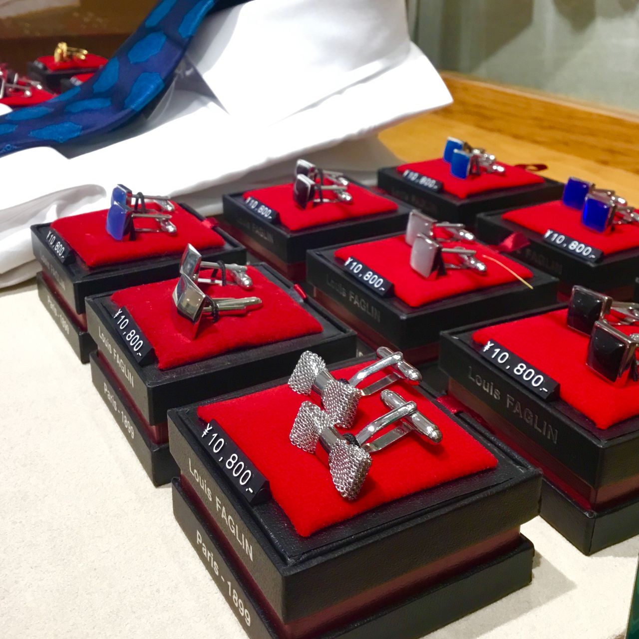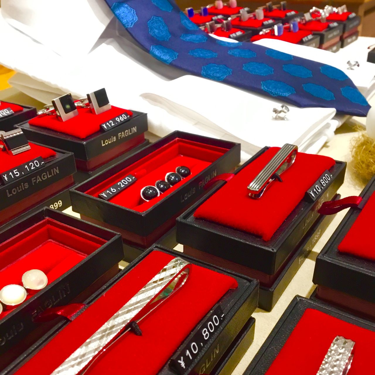 カフリンクスとタイピンをご用意致しました。