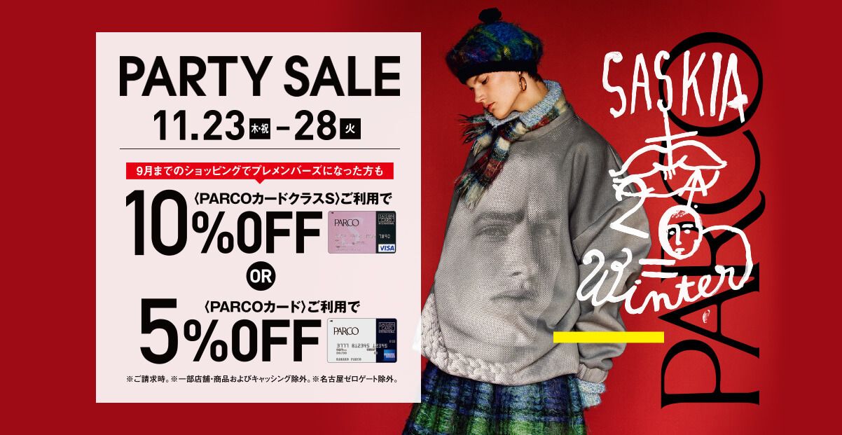 名古屋パルコでは今週22日から28日まで、冬のPARTY&SALEが開催されます。
