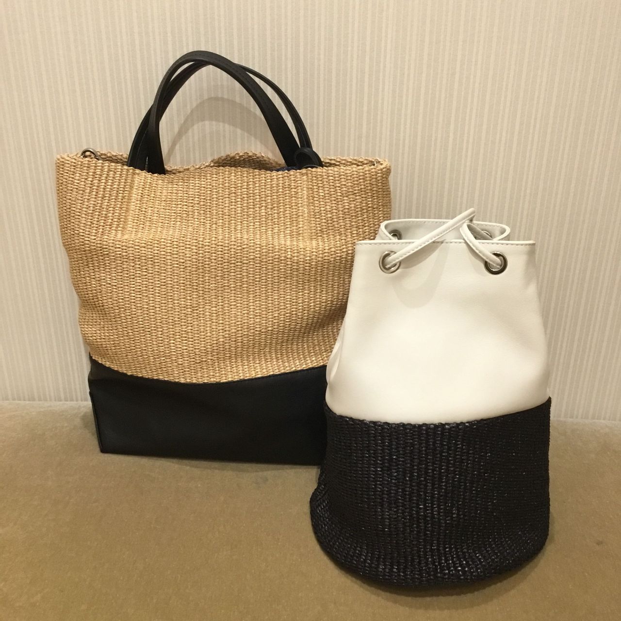 レザーと涼しげな素材のコンビバッグです。