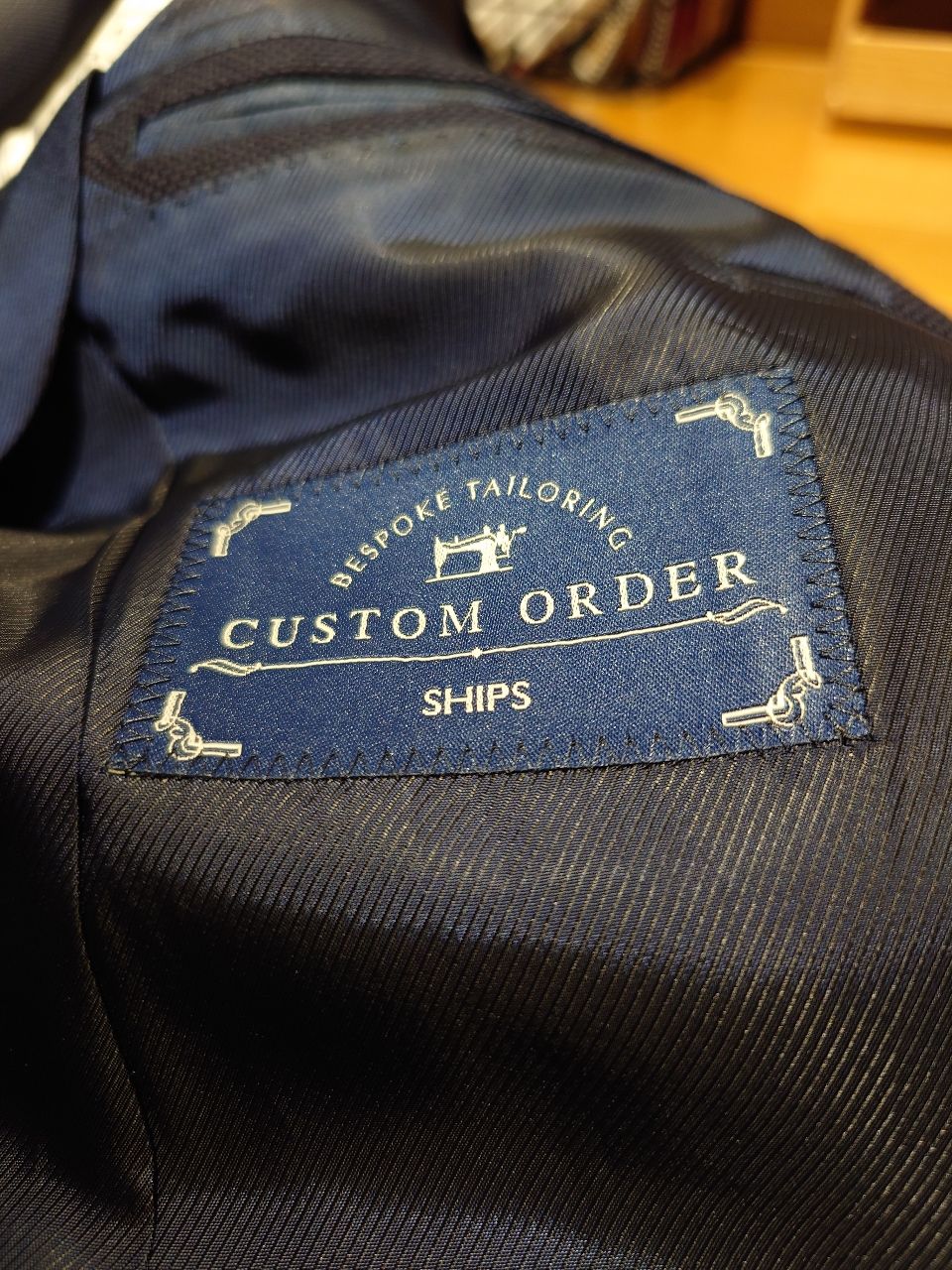 という企画でSHIPSと言えばの紺ブレをこの生地でオーダーしました。