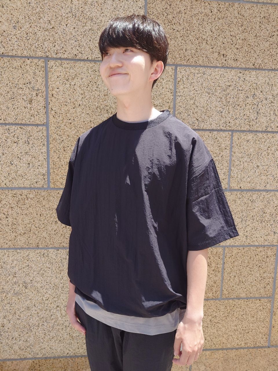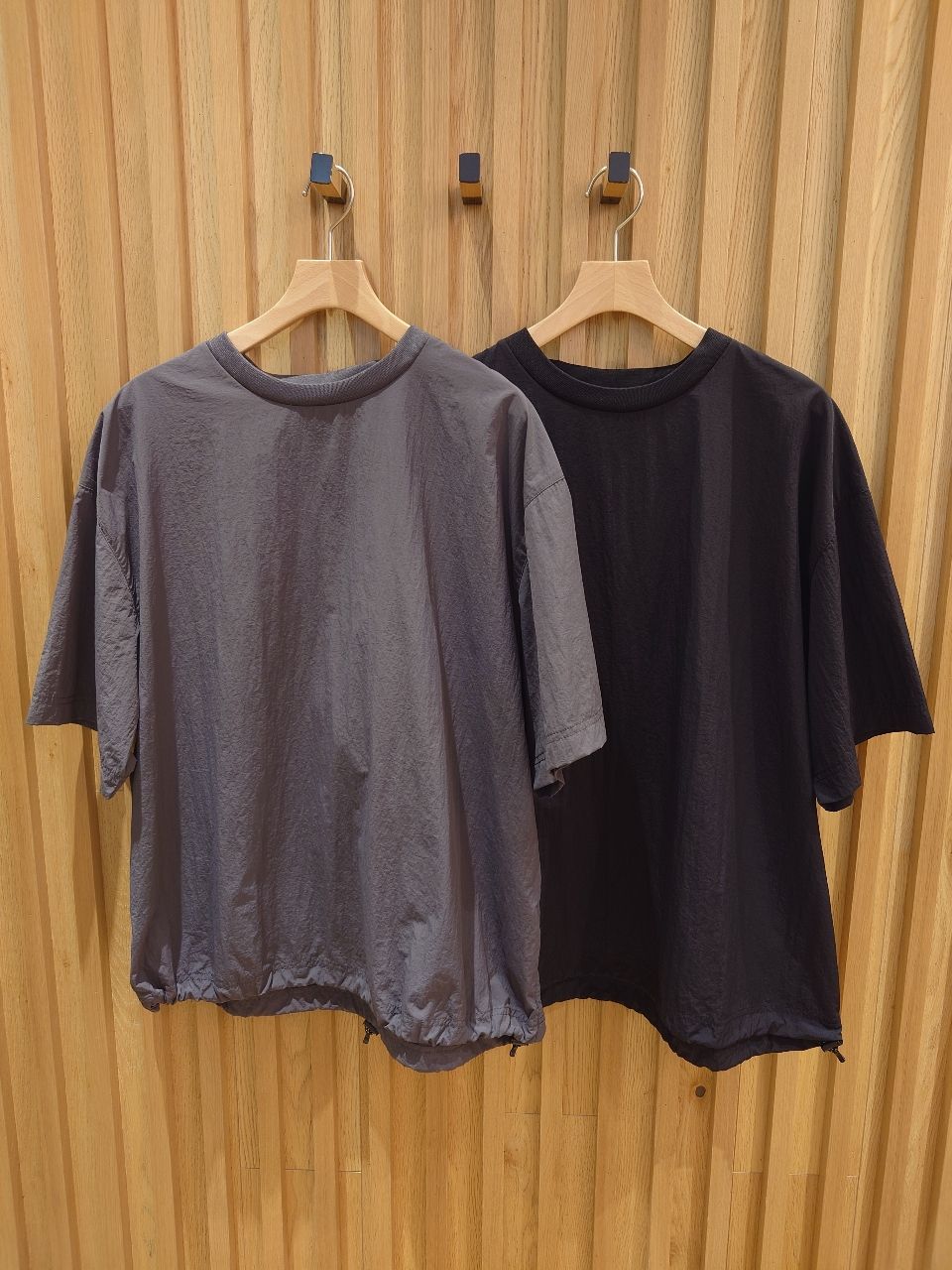 このTシャツも裾が絞れるのでシルエットで遊べますね。