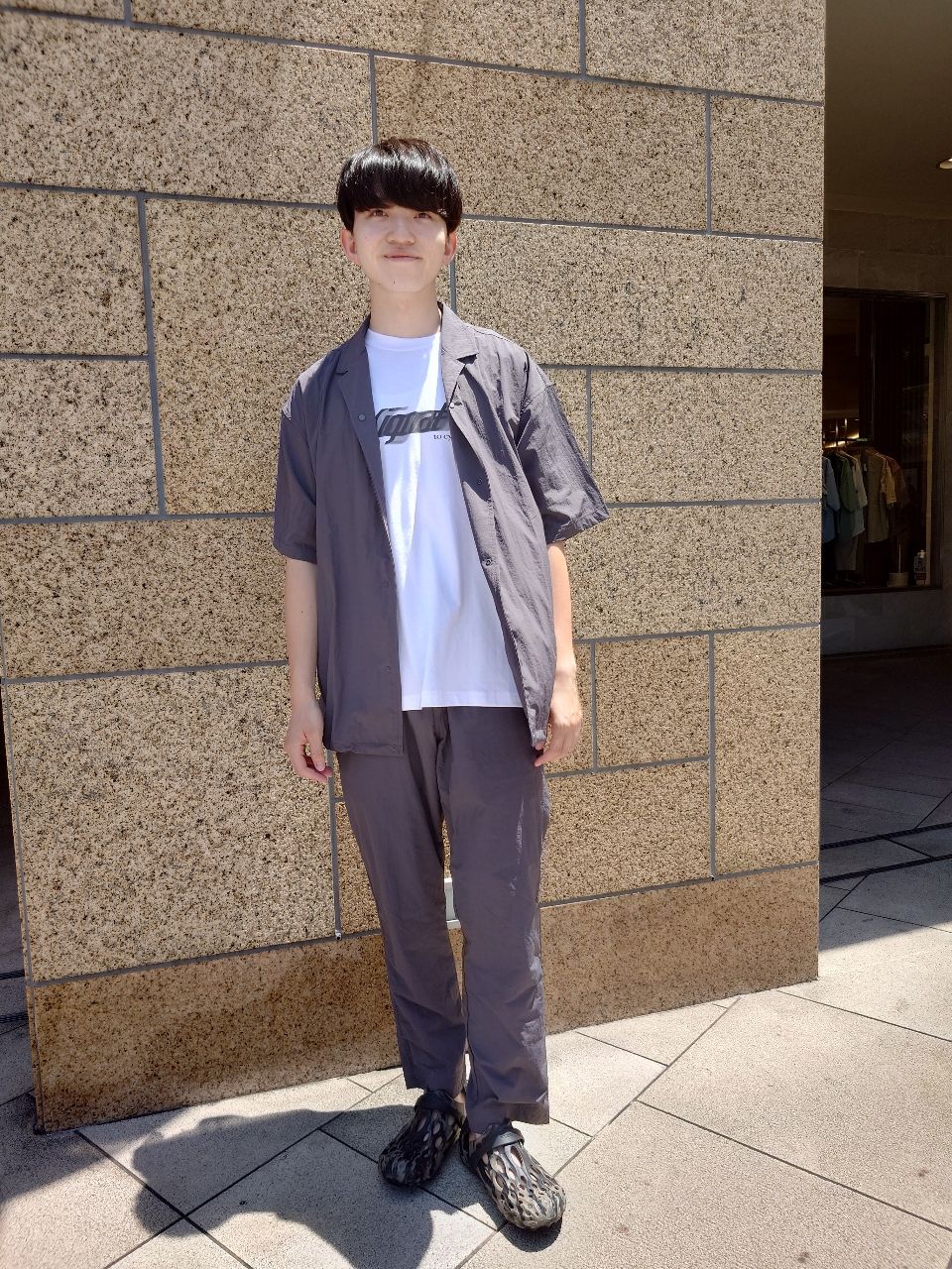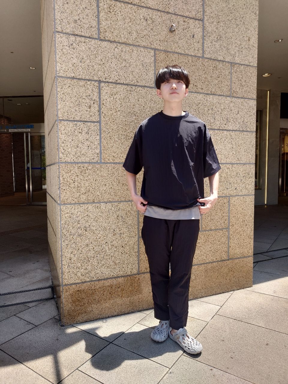 グレーとブラックのモノトーンコーディネート。