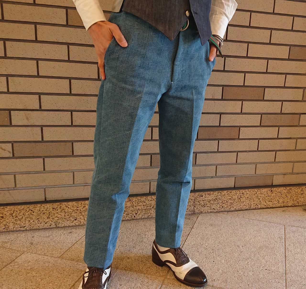 彼が履いてるのはイタリアのパンツ専業メーカー、セラドア(私物)です。