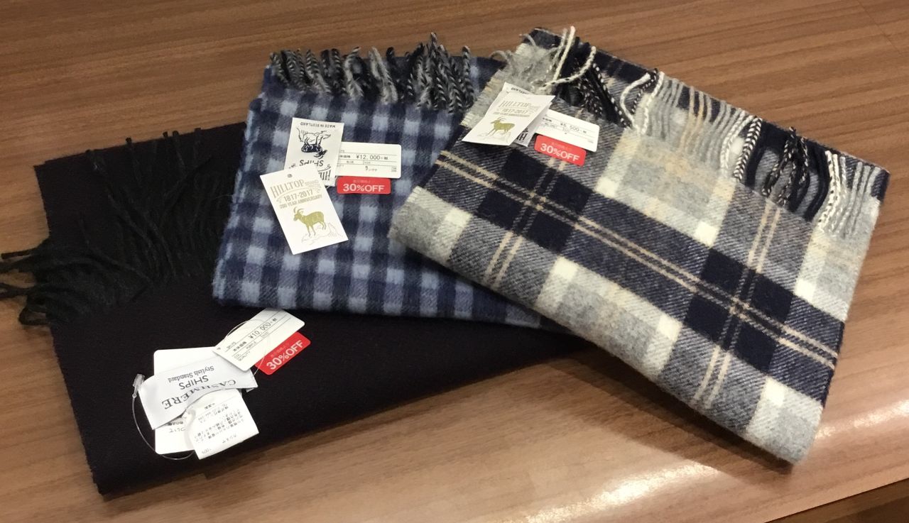 カシミヤ100%やアンゴラ、ウールといった暖かみのある素材のマフラーや