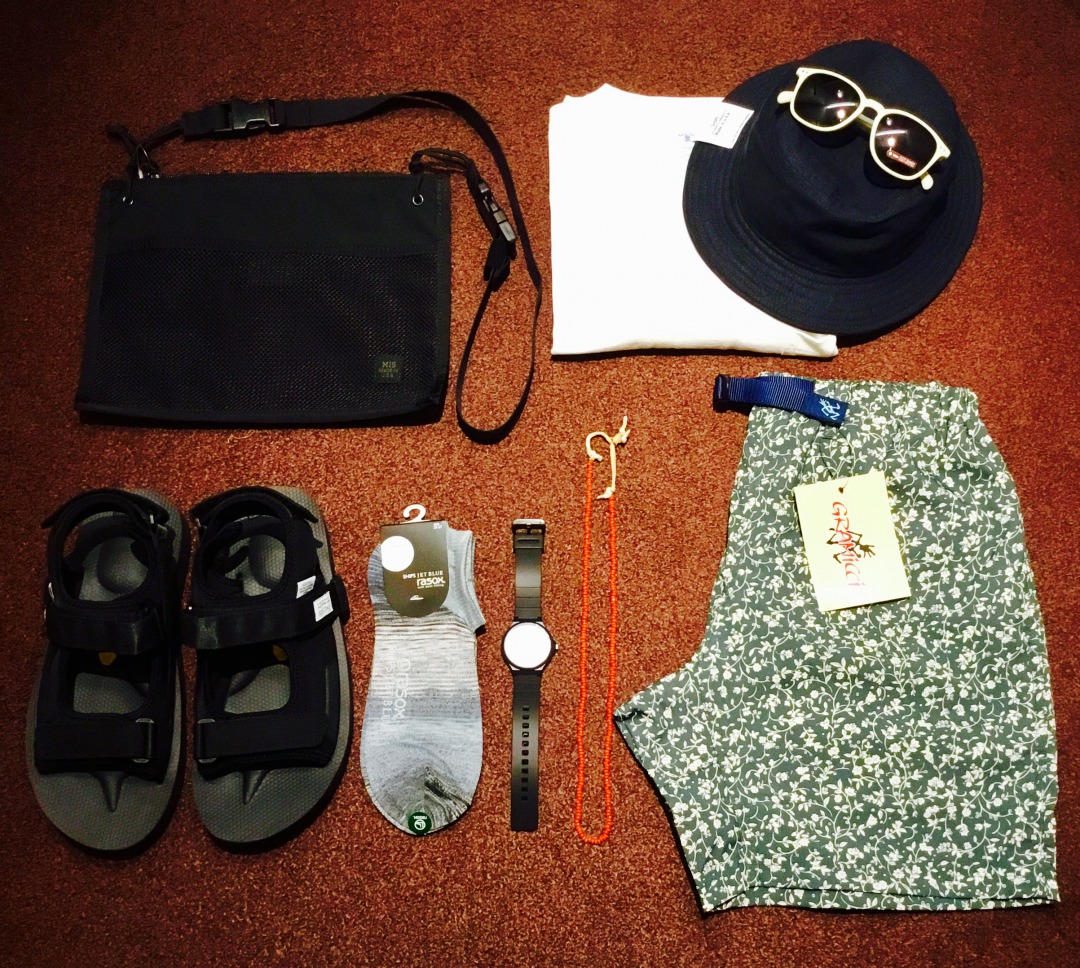 以下画像、わりとシンプルな感じですがササッとフェス用っぽくアイテムを揃えてみました。