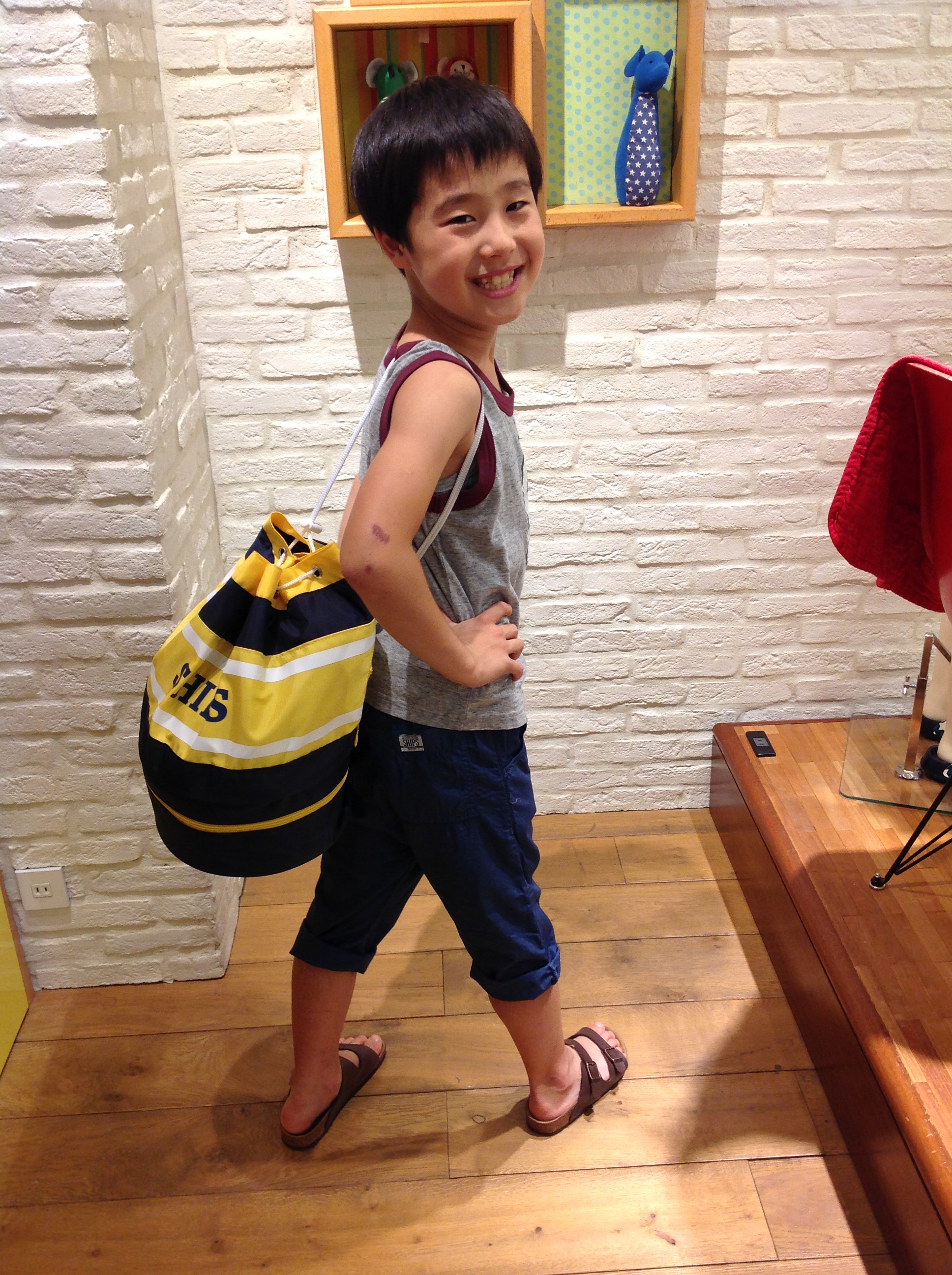 NUMBERING TANK TOP ¥3.600(+TAX) MARUGOMU SHORTS ¥6.500(+TAX) POOL BAG ¥4.000(+TAX) 最近バスケットを習い始めたリオ君。 そんなリオ君から、『ジャンプをして撮るのはどう?』というアイディアを頂きました。 ジャンプ?! そんな高度な撮影ができるでしょうか・・・ す・・・凄い!!! リオくんのジャンプ力に驚きました!!!! ただ、肝心の商品が見えないので、最終的にこんな感じになりました☆ 笑顔のままでジャンプしてるって凄いですよね!? 元気ハツラツな感じがでていてとても良い写真が撮れました!! 今回の写真は、【SHIPS ONLINE SHOP】→【FROM SHOP STAFF】 に載っていますので、ぜひチェックして下さい!! (http://onlineshop.shipsltd.co.jp/styling/styling_list.html?pl_on=23) 最後に、リオ君が大好きなSTAFFあずさお姉さんとの写真を数枚。 でも。。。