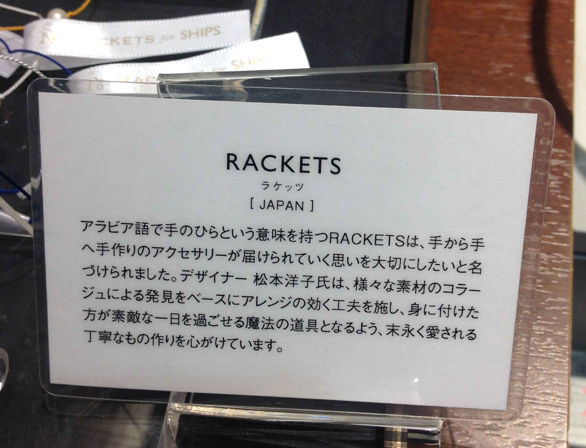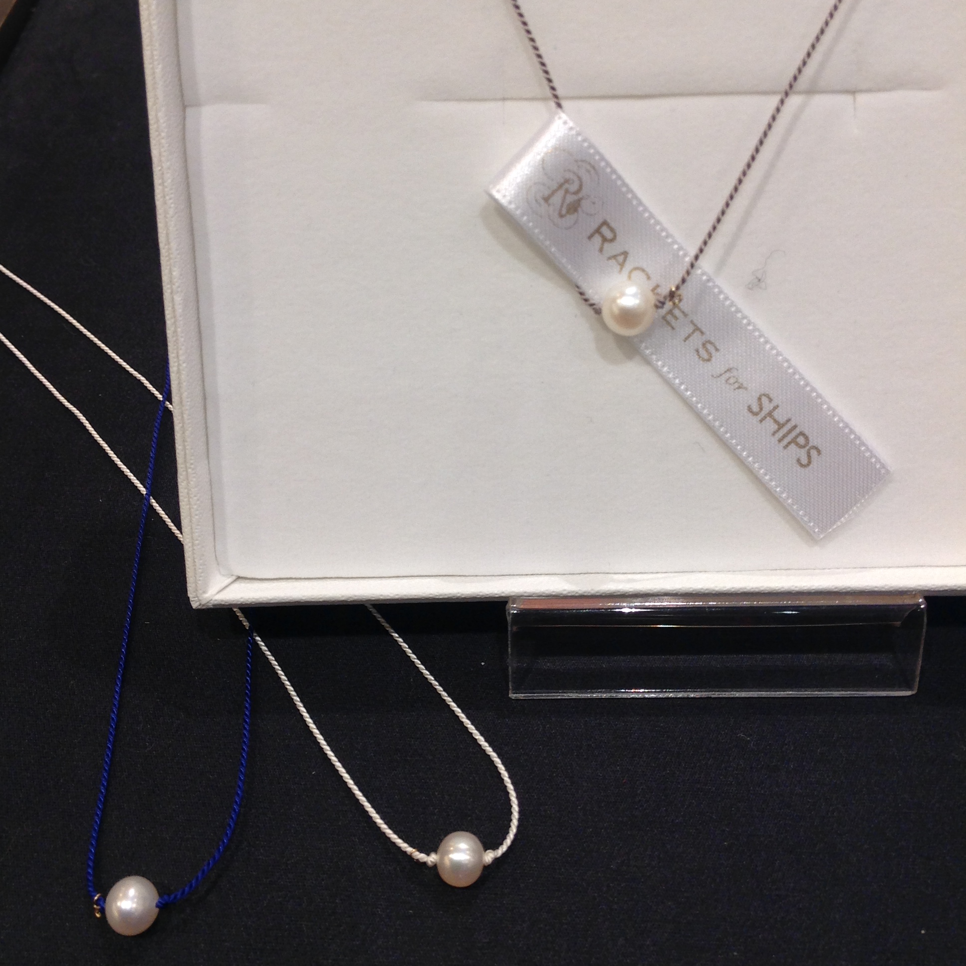 『RACKETS』という日本のブランドです。 パールと小さなダイヤモンドが可愛らしいアクセサリーです。 ネックレスやブレスレットは、カラフルなシルクの糸を使っています。
