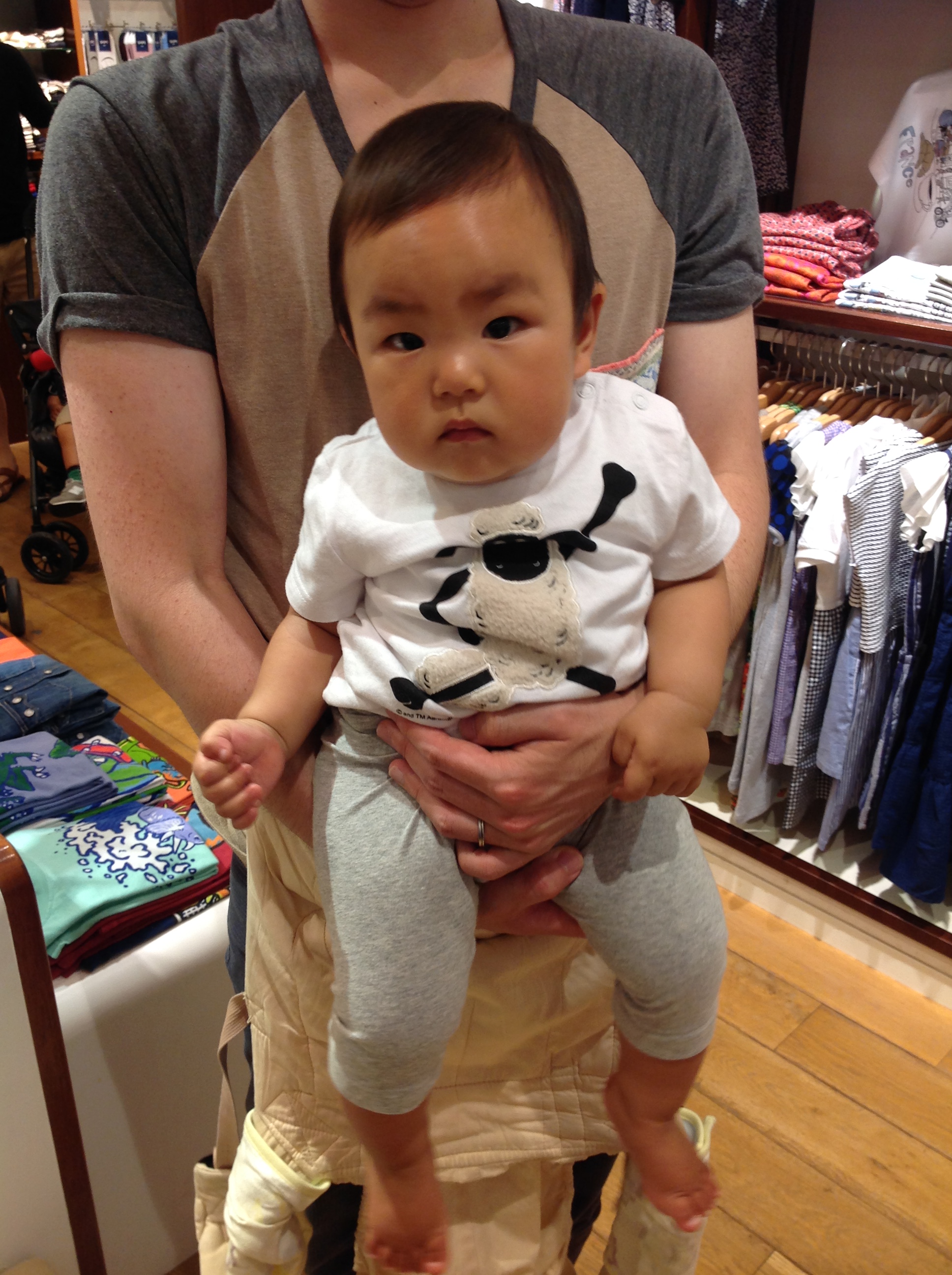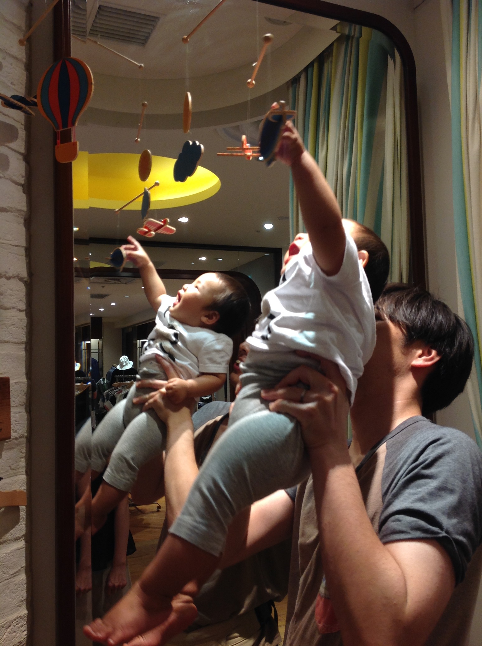 ショーンと同じポーズだ!!!   モビールの前ではニコニコだったハルマ君ですが。 039