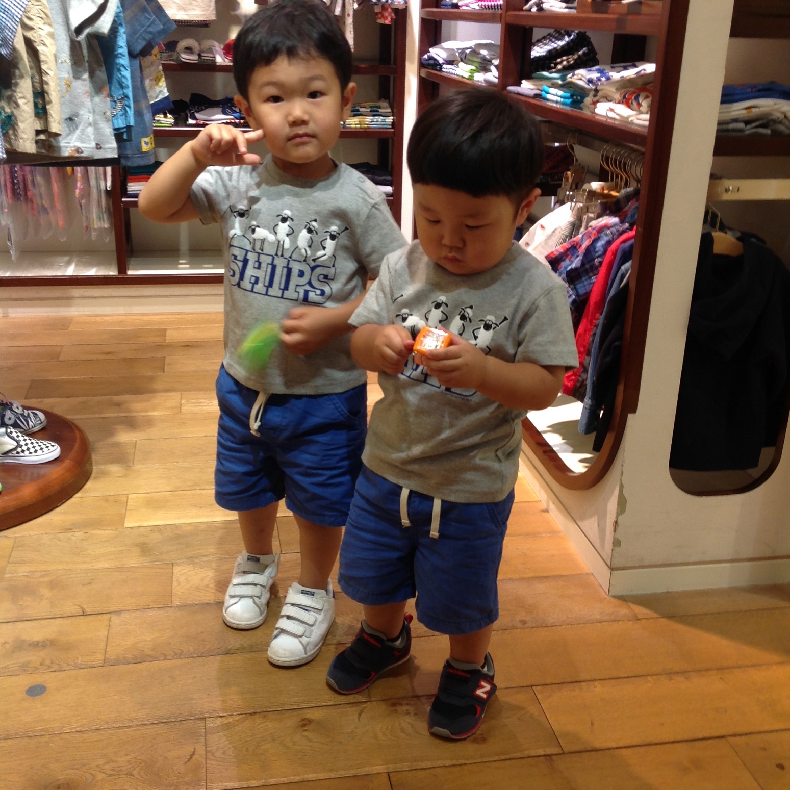 たいちゃん。2歳になったばかり。りっぱなお腹で100cmがピッタリ。   従兄弟どうしのお2人に、並んで写真を撮りたかったのですが...   なかなかうまくいかないものですね・・ 奇跡の一枚がこちら。 image5
