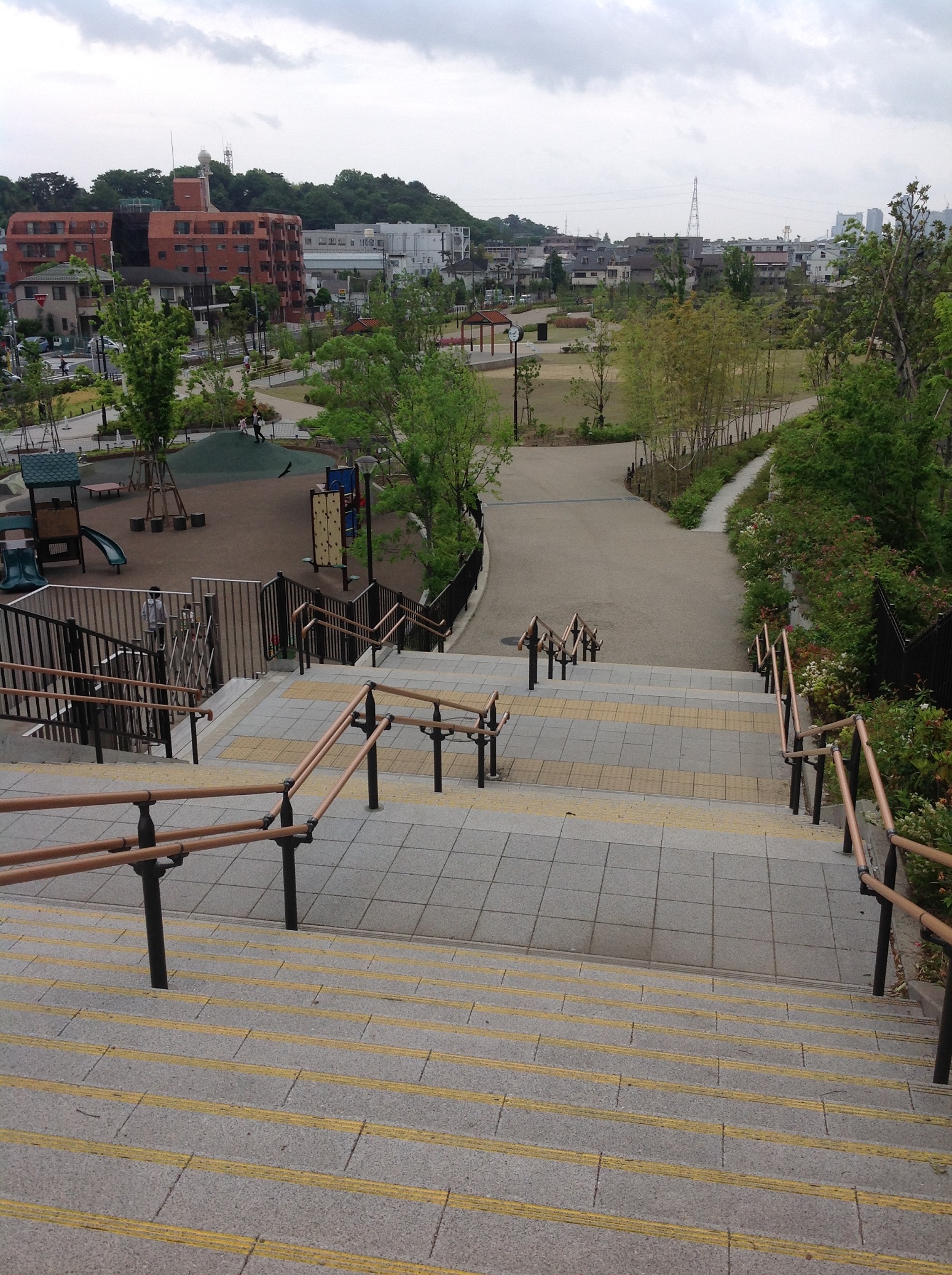 こちらの公園までは、駅から広々とした通路をまっすぐ歩くだけ。 車もいないですし、バリアフリーなのでベビーカーも車椅子も全く不便を感じずに こちらまで来ることができます。