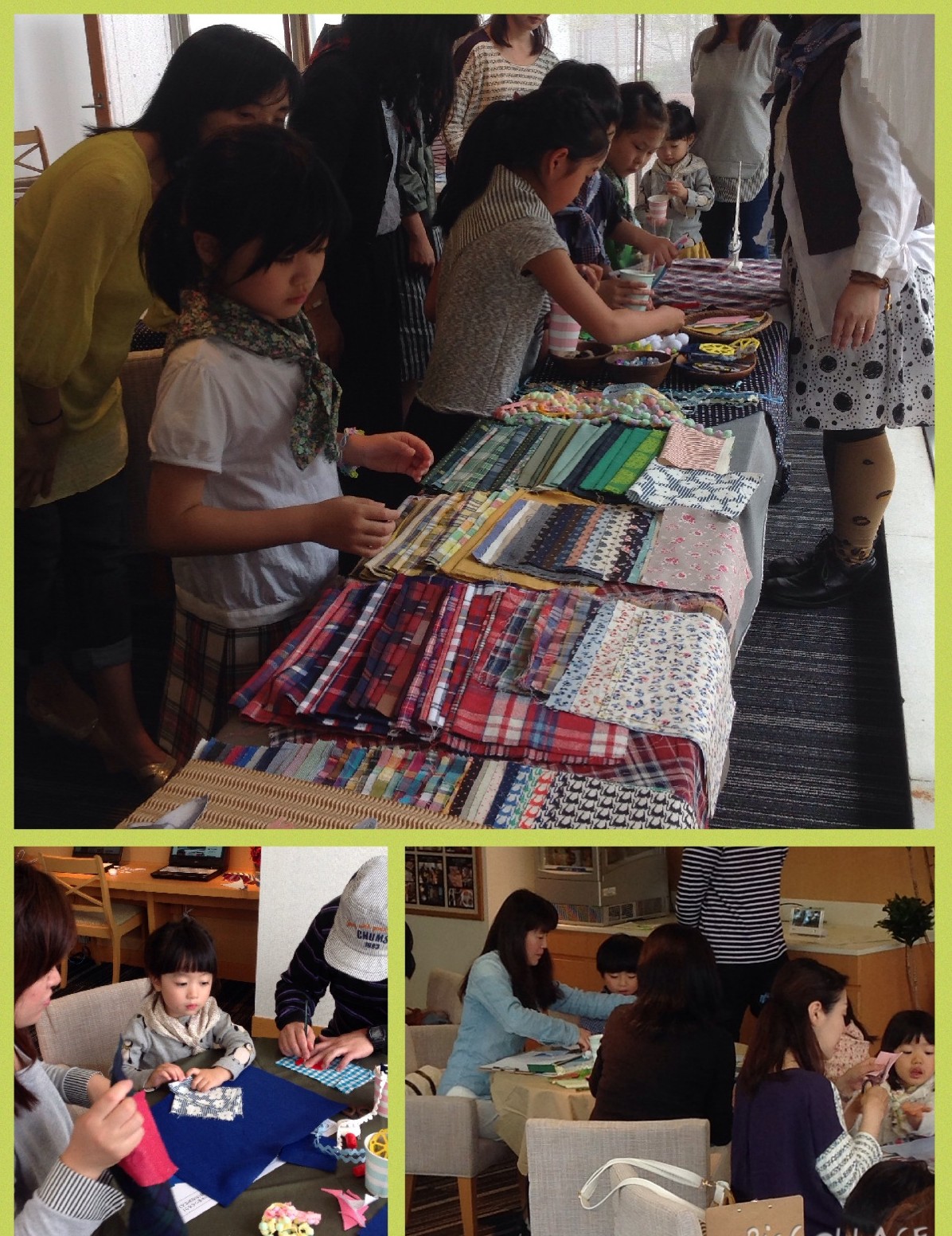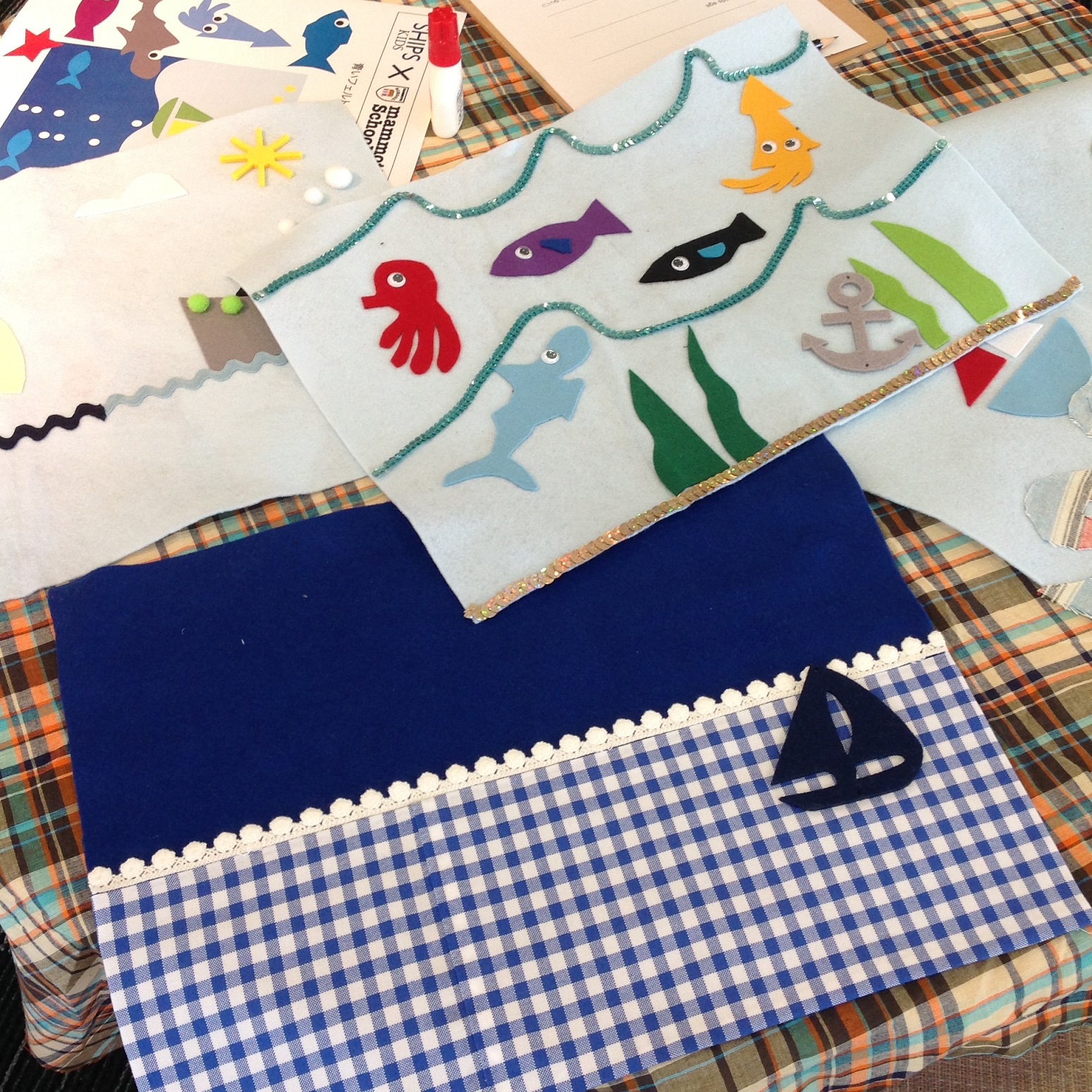 あとは、子供たちが好きな生地やスパンコールなど装飾を選びます。 たくさんあるので迷ってしまいますね。 ちなみに、生地はSHIPS KIDSの商品を作る際に使った生地見本なので、 実際に商品として使われているものもたくさんありました。