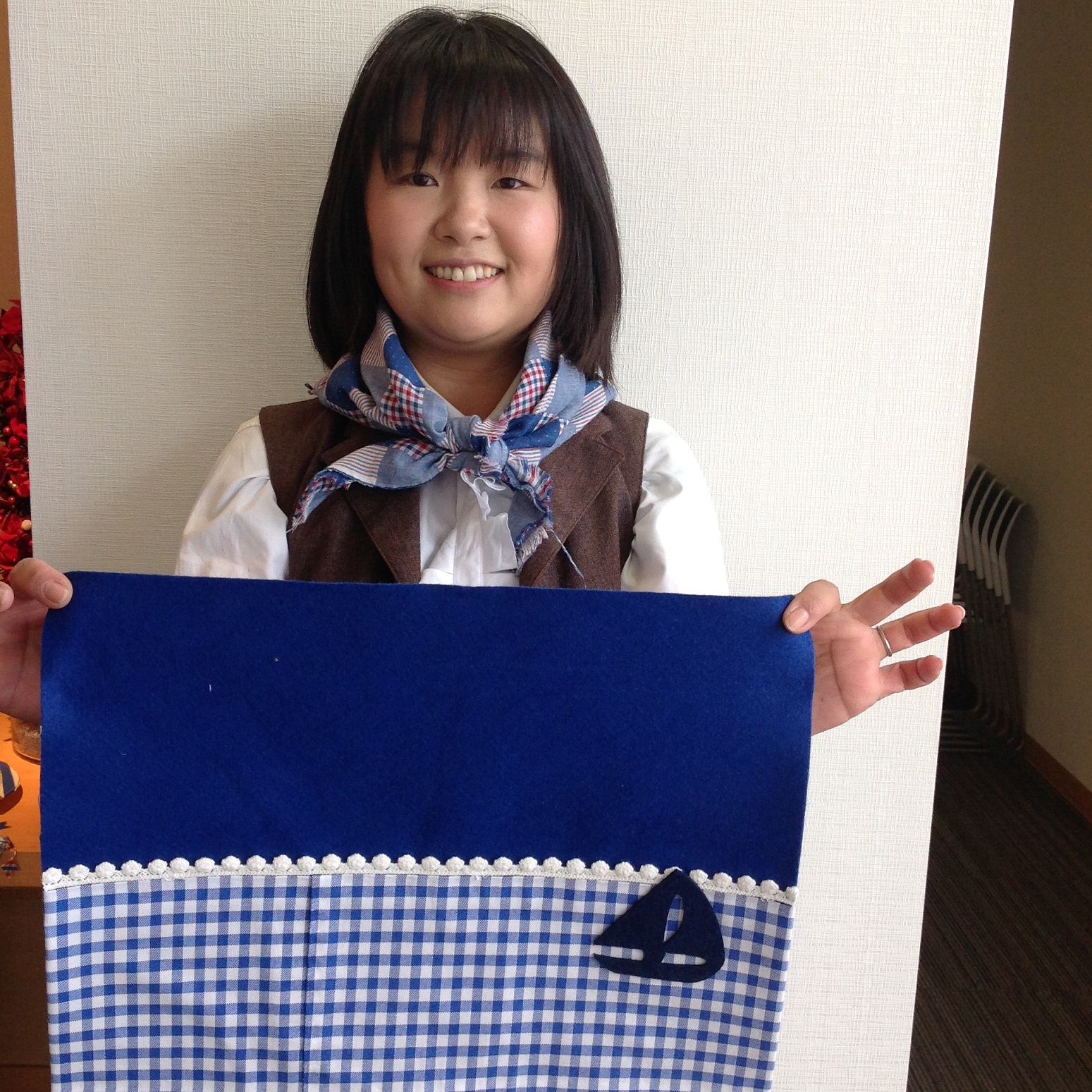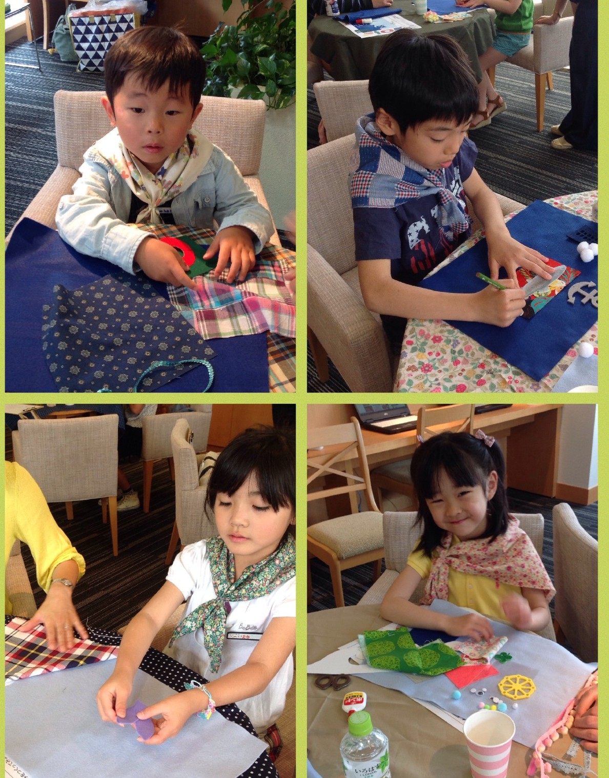 まずは入口で。 水色か青。どちらかの好きなフェルトを選びます。(台紙となります。)