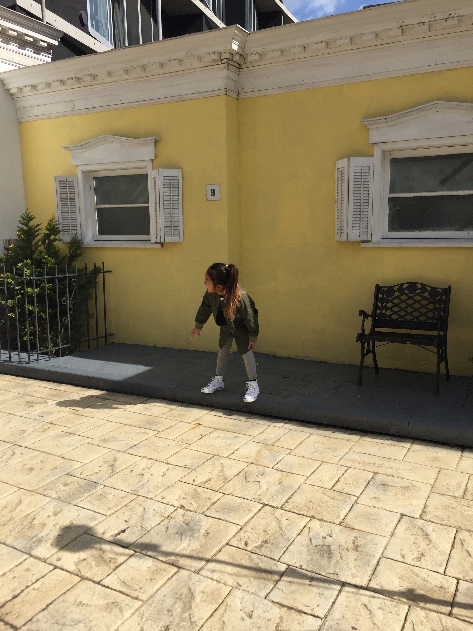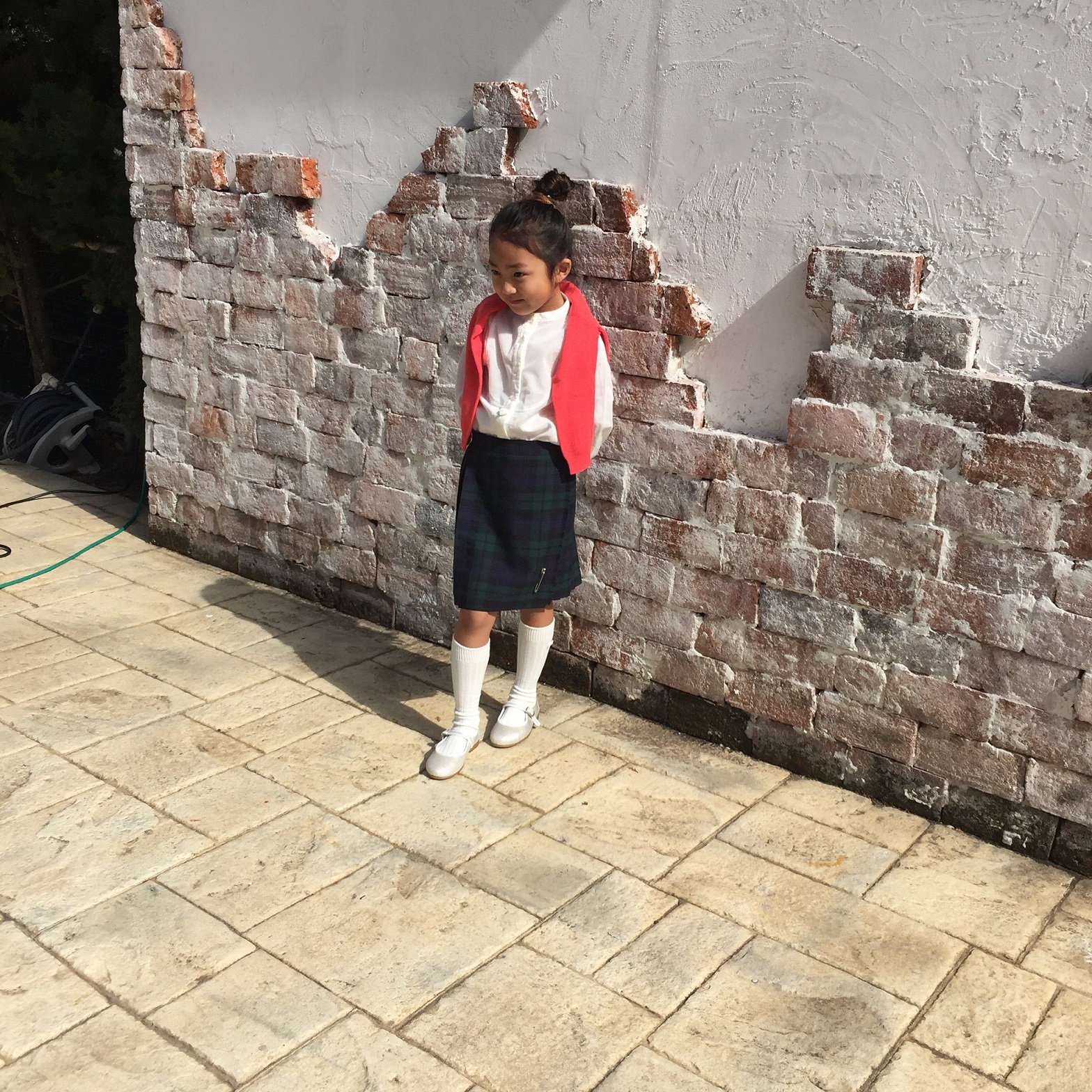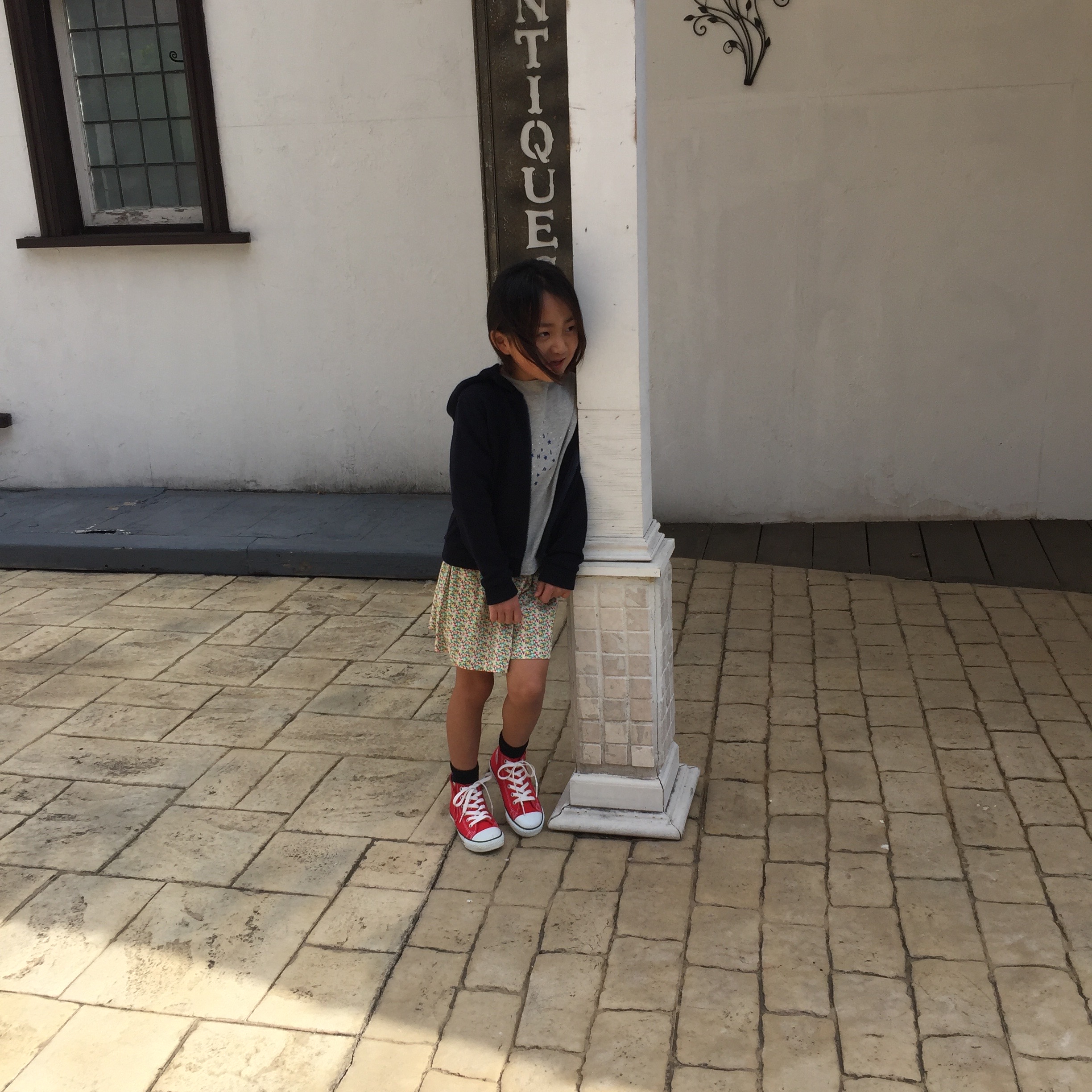 スカイブルーのパンツは、テーパード。 真っ白のコンバースに履き替えて、更に春らしくなりました。 緊張も少しほぐれてきたかな?? 最後!!! わーたん一番のお気に入りコーディネイトだそうです。