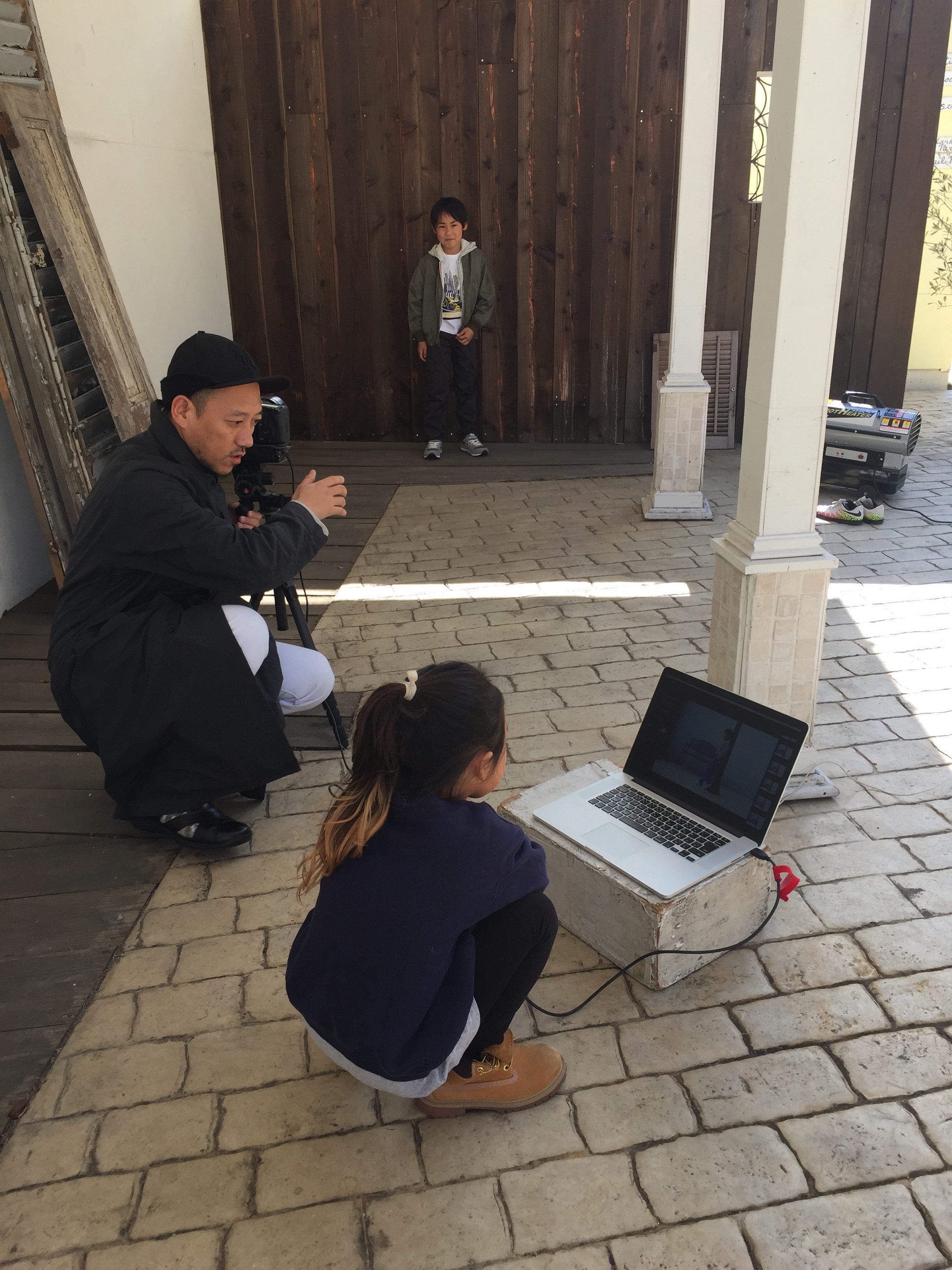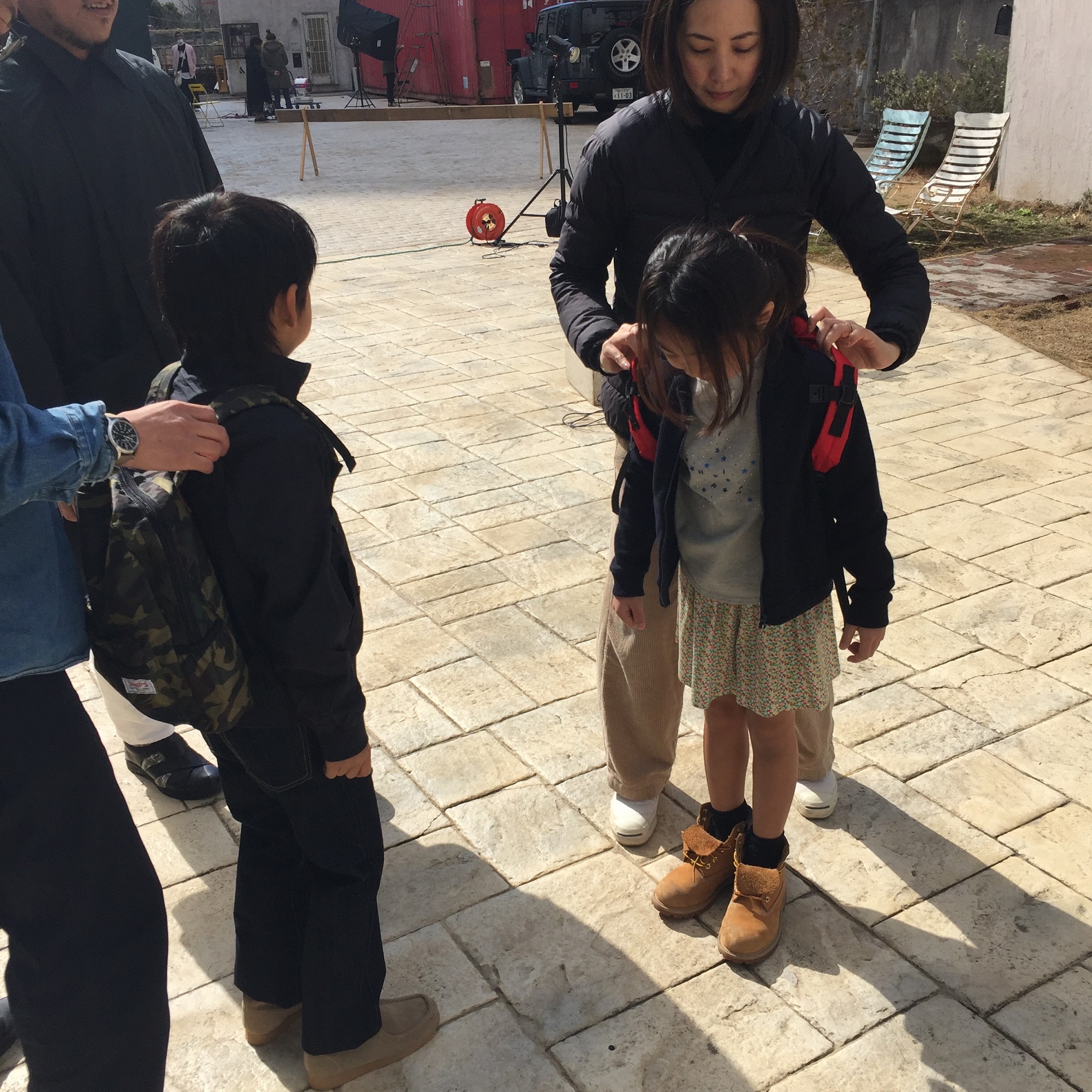 冬も大人気だったMA-1。春の新作は中綿なしのナイロンジャケットです。 あら??わーたん?? そこはアシスタントさんの定位置ではないですか?? 撮った写真をみてポーズのアドバイスをしてました。。 カメラマンさんもまんざらでもない?? 終わってすっきりのわーたんと、後一枚で終了のふーとくん。