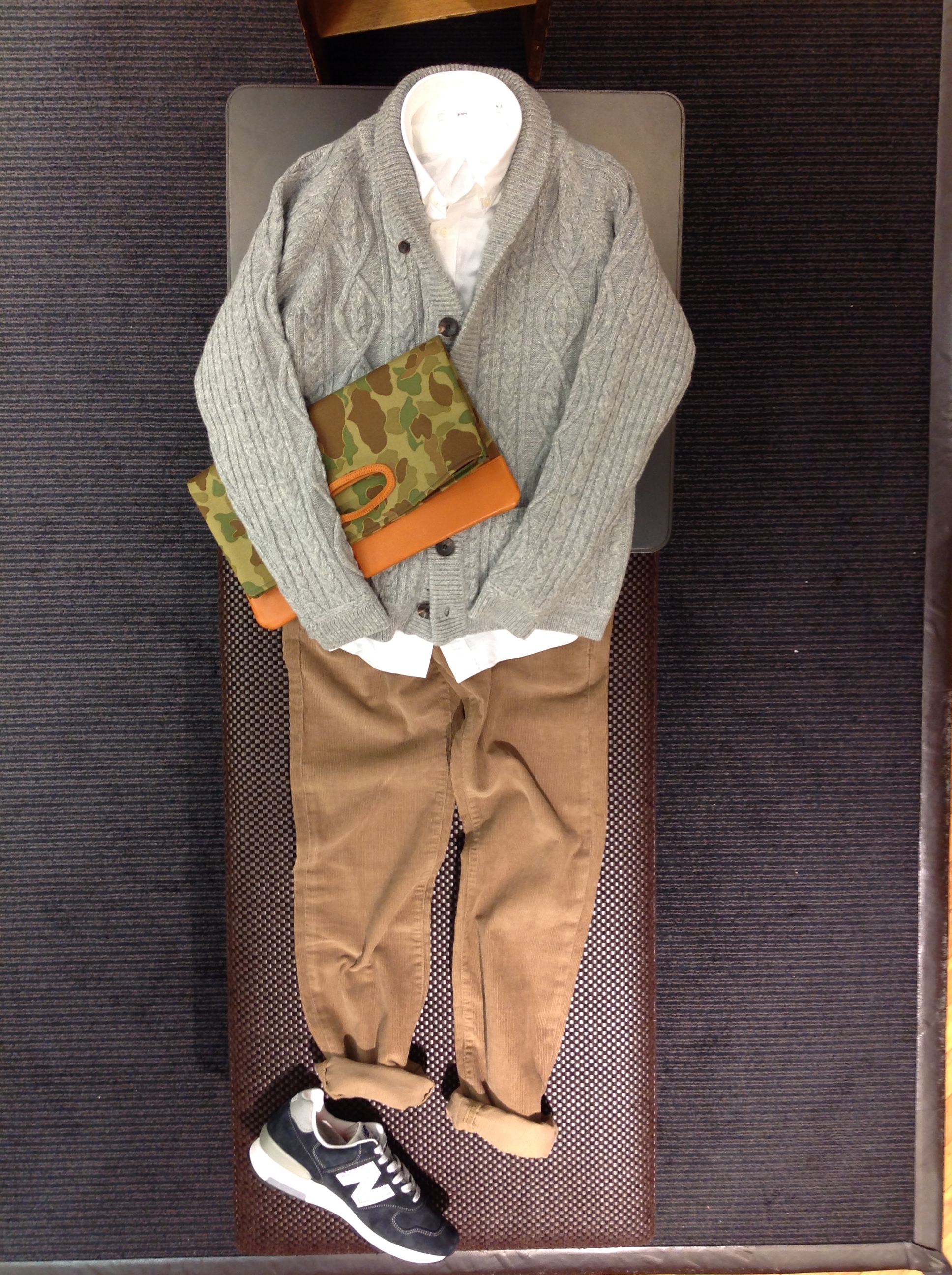 SHIPS: OX B.D SHIRT ¥6.200+tax INVERARAN: SHAWL CABLE CARDIGAN ¥32.000+tax SHIPS: CORDUROY PANTS ¥7.500+tax