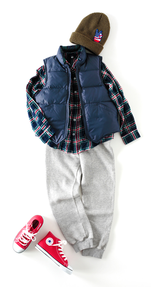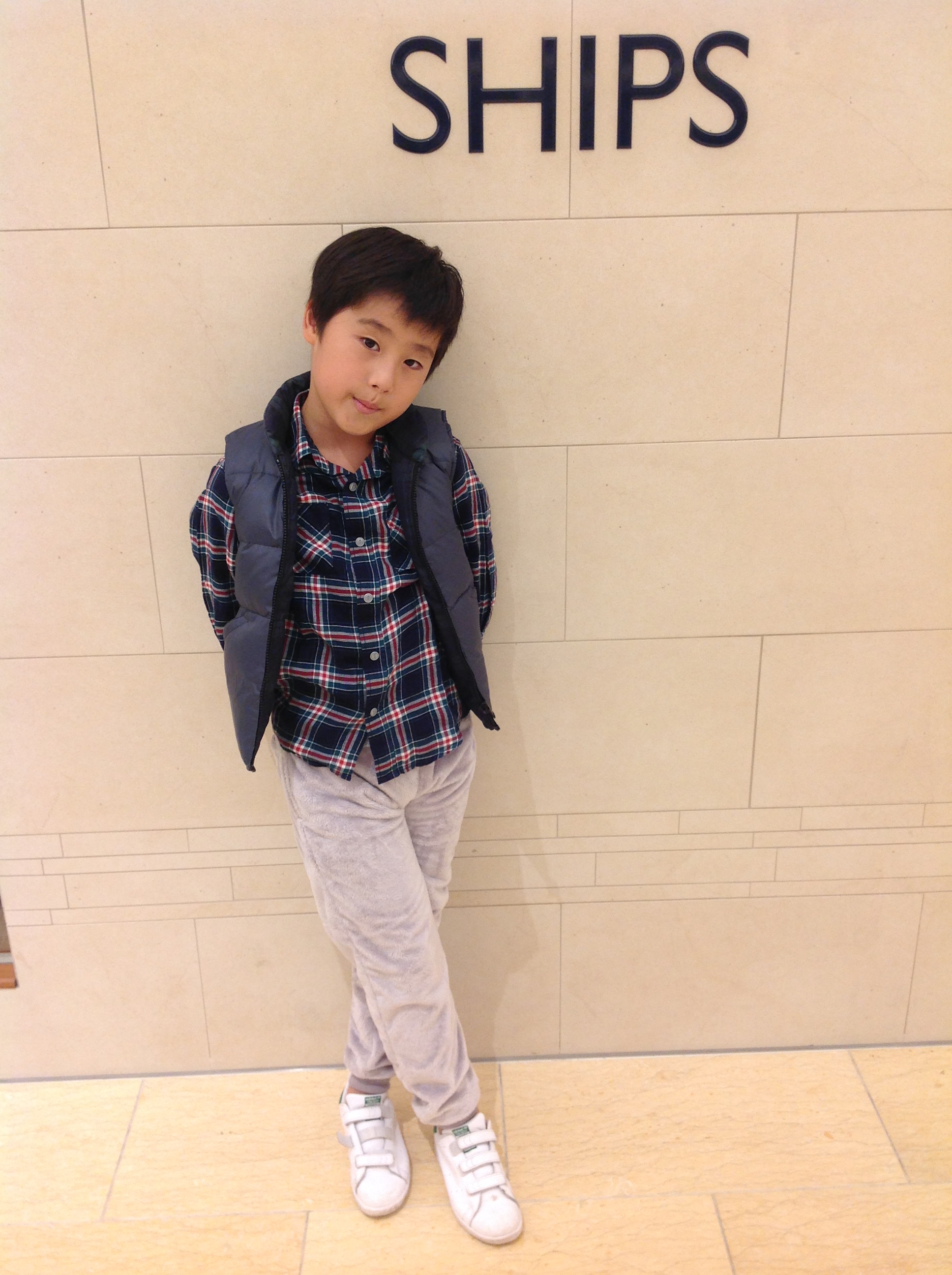 シャツ:SHIPS 100cm~Msize ¥7.000(+TAX)+~7.500(+TAX) パンツ:THE DAY 100cm~Ssize ¥8.900(+TAX)~9.200(+TAX) ダウンジャケット:SHIPS 100cm~Msize ¥13.000(+TAX)~13.000(+TAX)