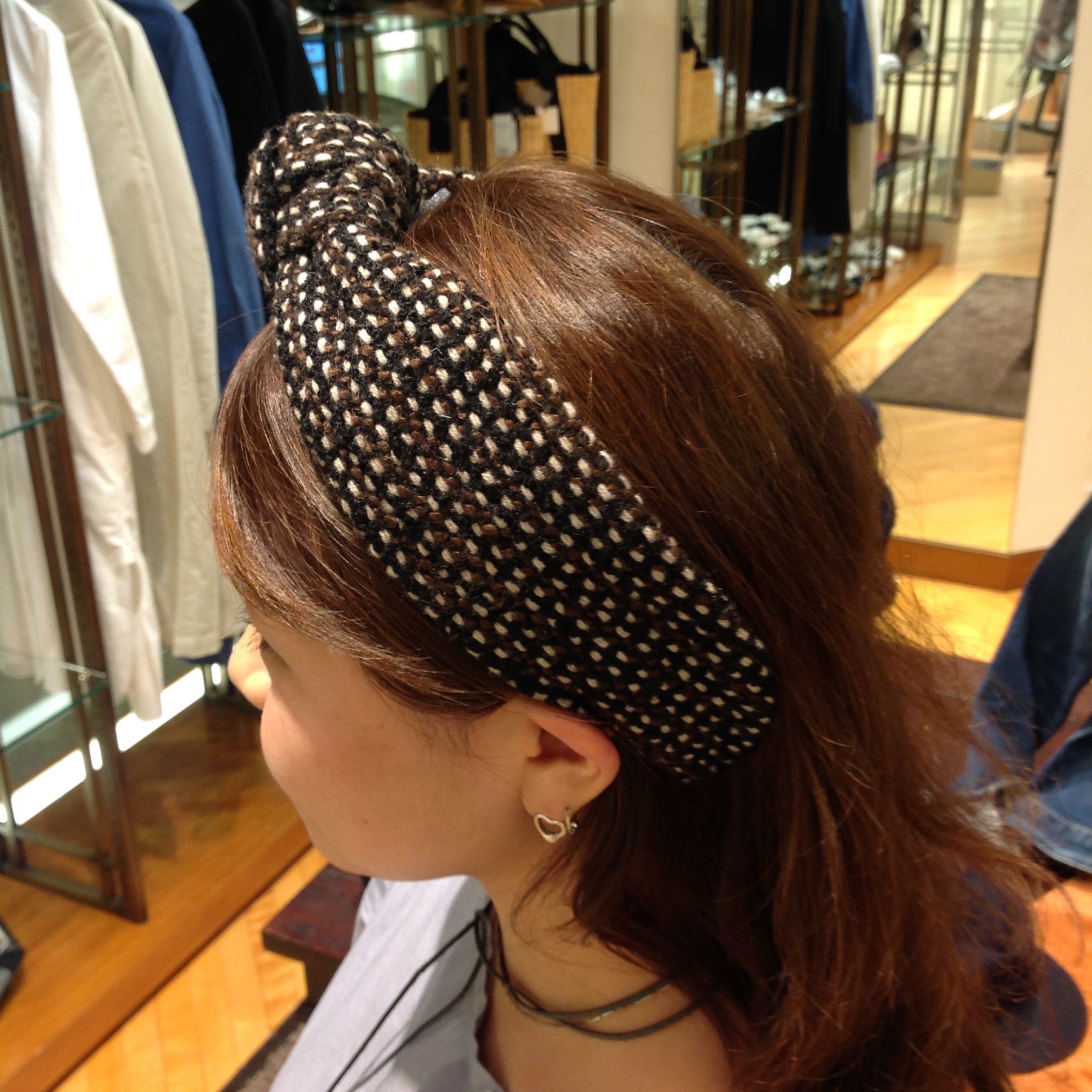JENNIFER.O:RIBON TWEED HEADBAND ¥12.000+TAX 大きなリボンが特徴のツイードヘアバンド。 ロングヘアにピッタリ。 いかがですか?? 帽子が苦手の方は、ヘアアクセからトライしてみるのも いいかもしれません★