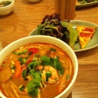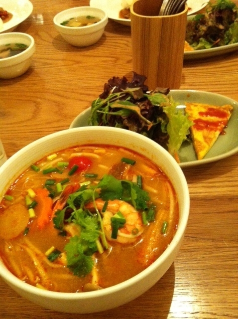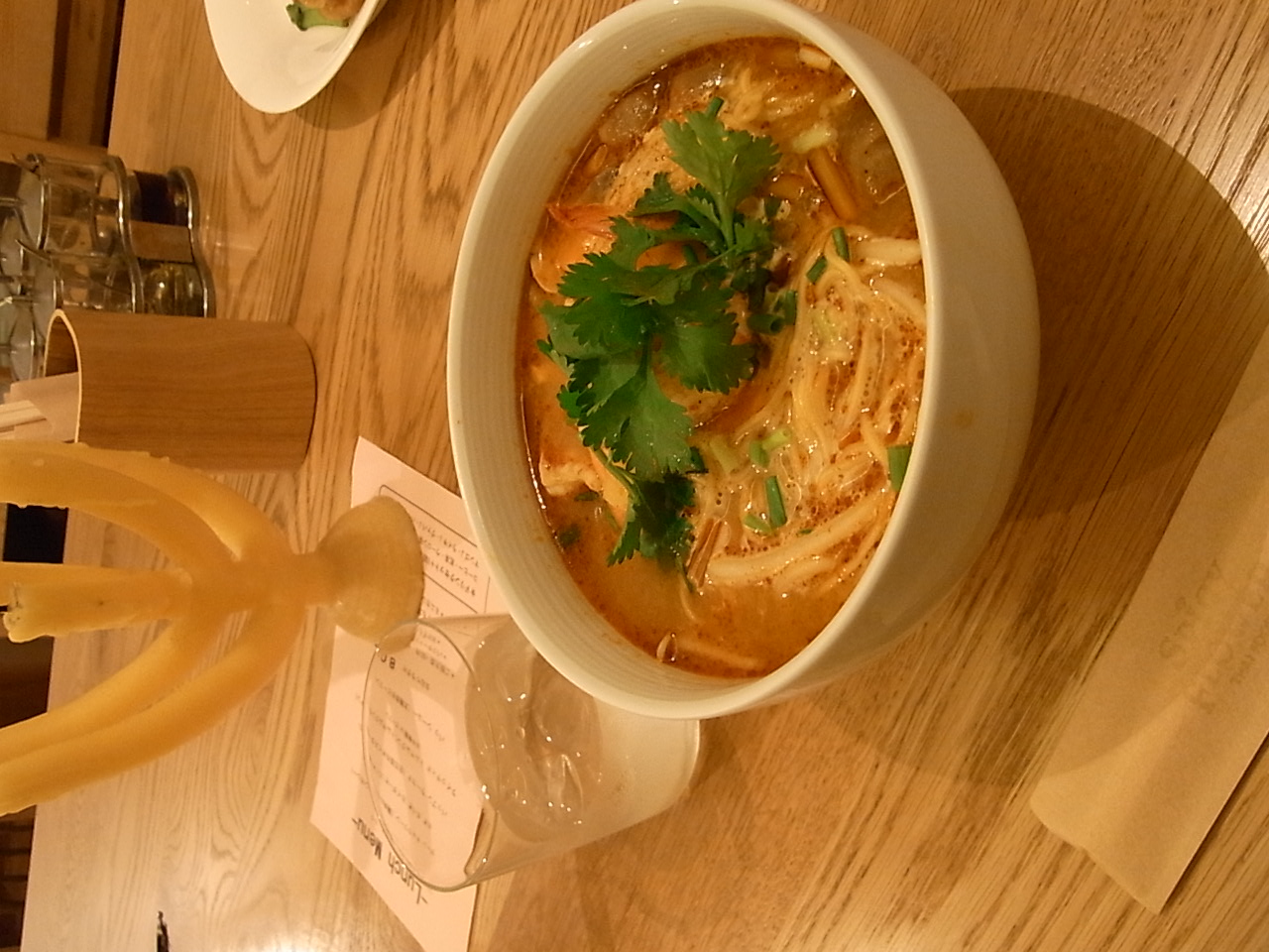 新人レポーター(初山)は、トムヤムラーメン+1ドリンク★ キタキタキタキターーー!!! 昼以降の活力に持って来いのチョイスでした!! 食後のドリンクもたっぷり飲めて、満足満足。 店内で常に流れるBGM、インストバンド『SAKEROCK(サケロック)』の甘いリズムにも癒されている私たち。 もう休日のランチさながら、心も胃袋も満たされ。。。二子玉川店へ戻って参りました★☆