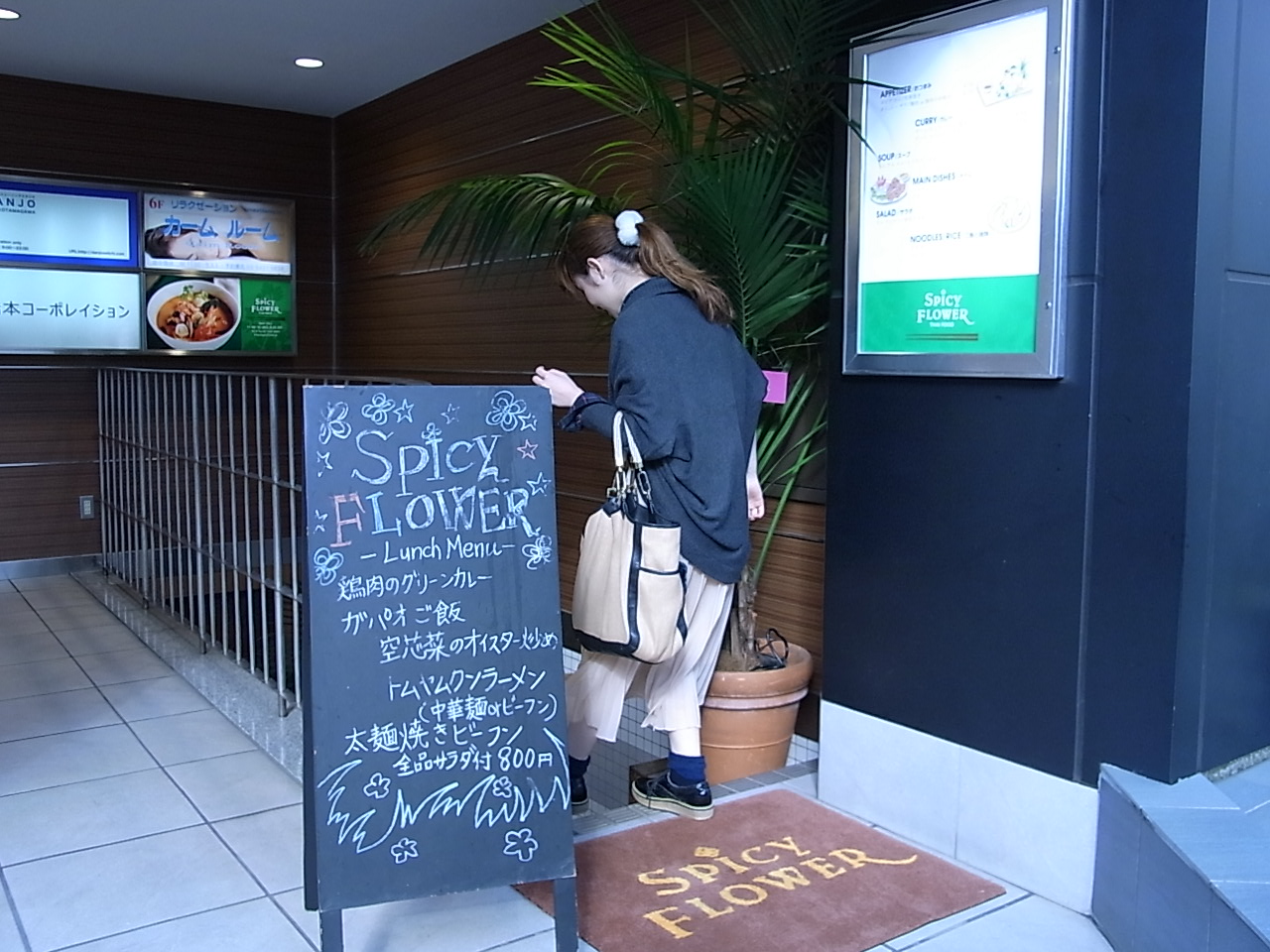 二子玉川の太陽の光を燦燦と浴びる、大橋のちかく。 車の往来の多い、玉堤通り沿いの地下一階なのであります。 最近では、二子玉川店のWOMENS&KIDSスタッフで大勢でランチすることも★ お腹をすかせた私たち(北村・初山)もいそいそと地下へと下りていきます。