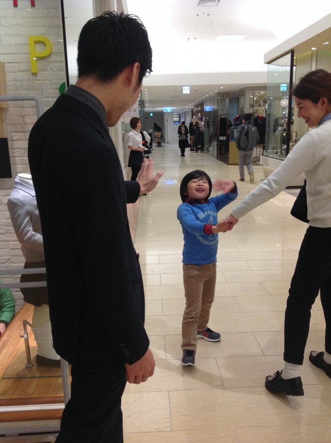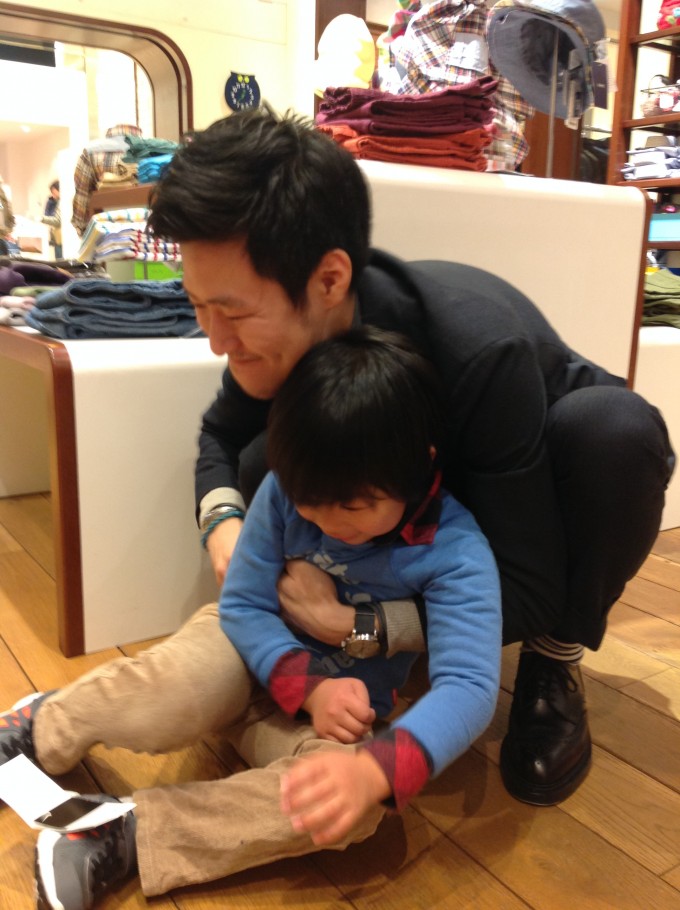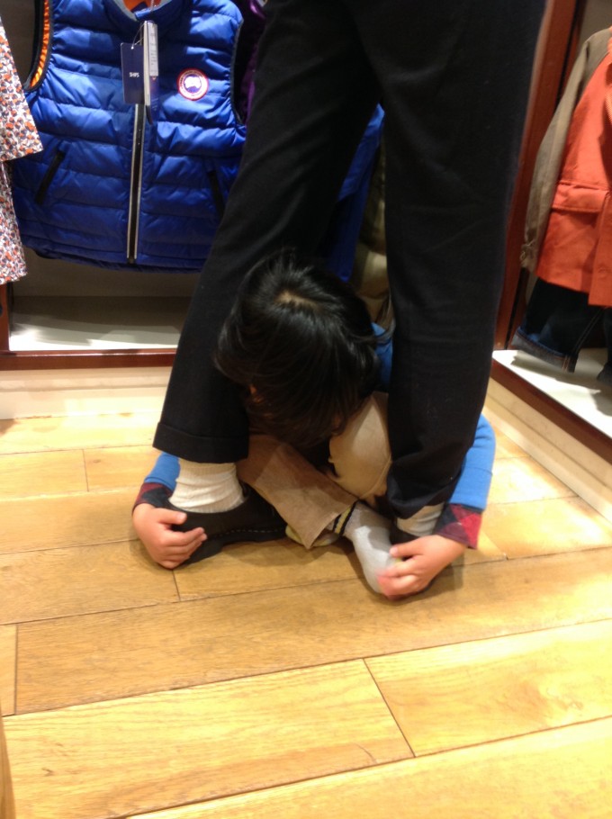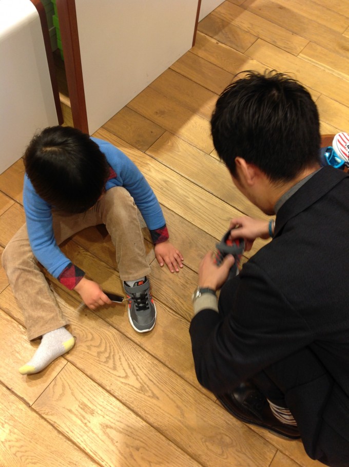 はるくん、いつもお店に着くなりまず靴を脱ぎます。
