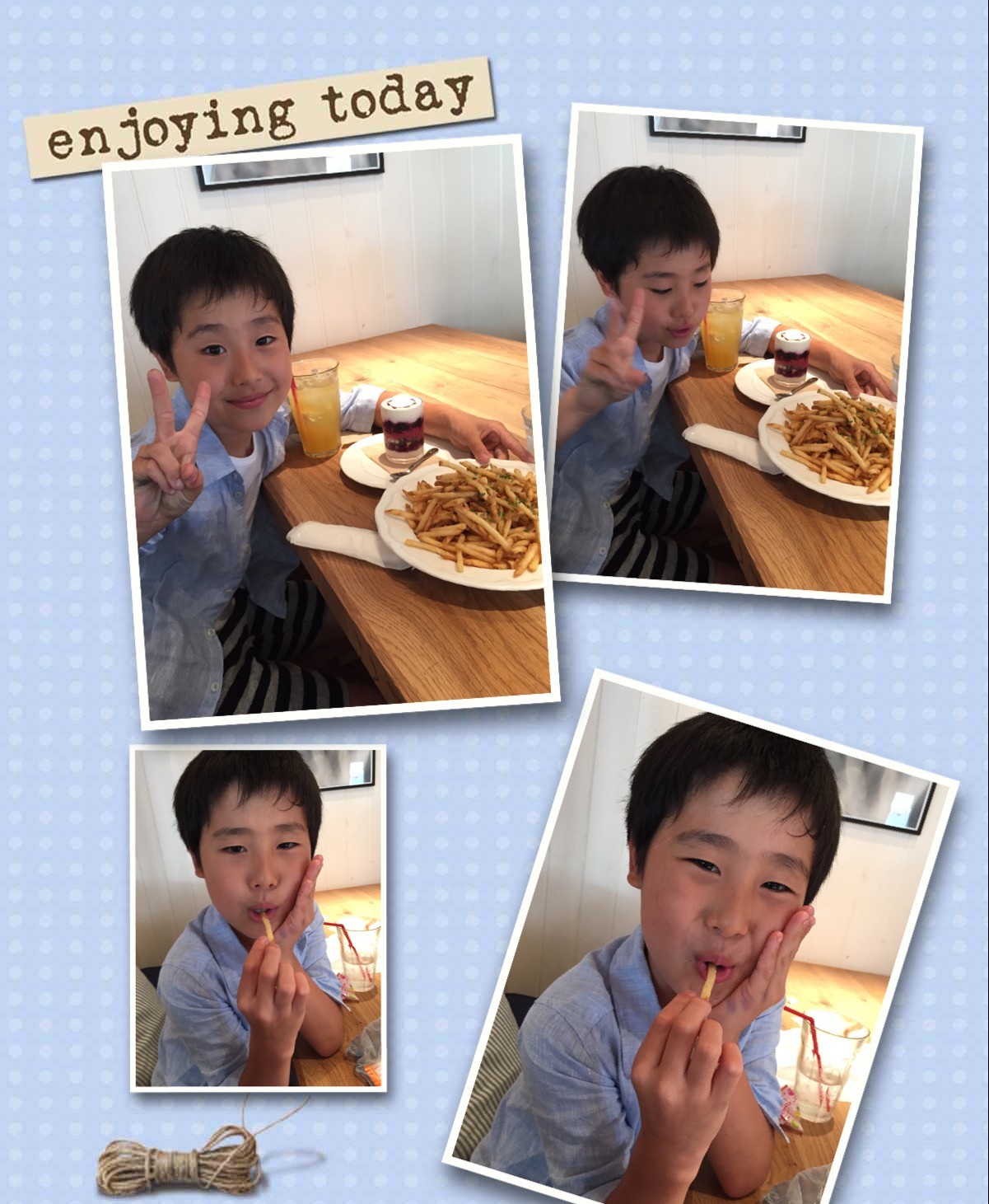 ポテトが大大大大好きなリオくんが頼んだのは山盛りポテト。 山盛りのこちらをパクパク。。。。 気がついたら両手で交互にパクパクパクパク。