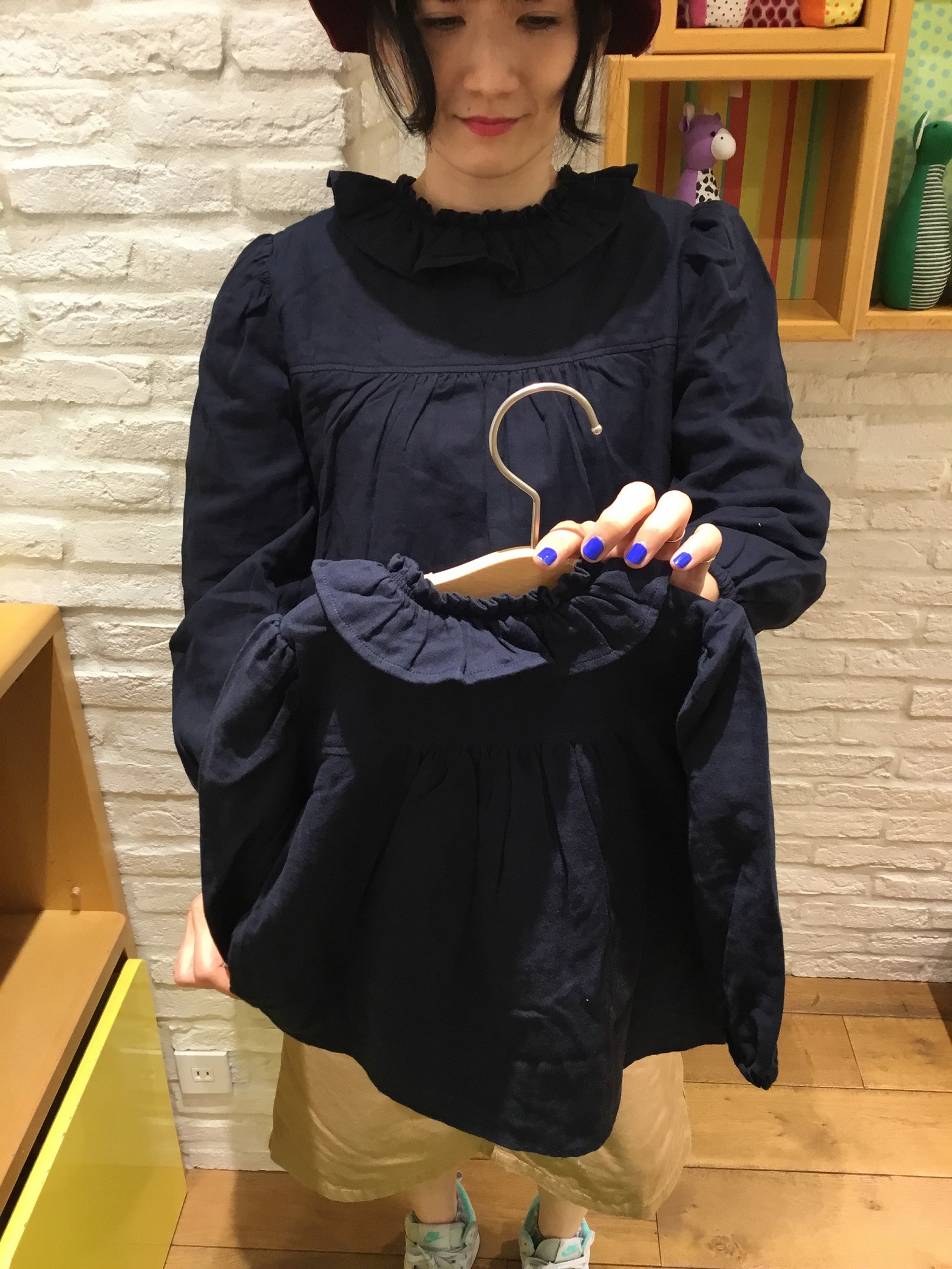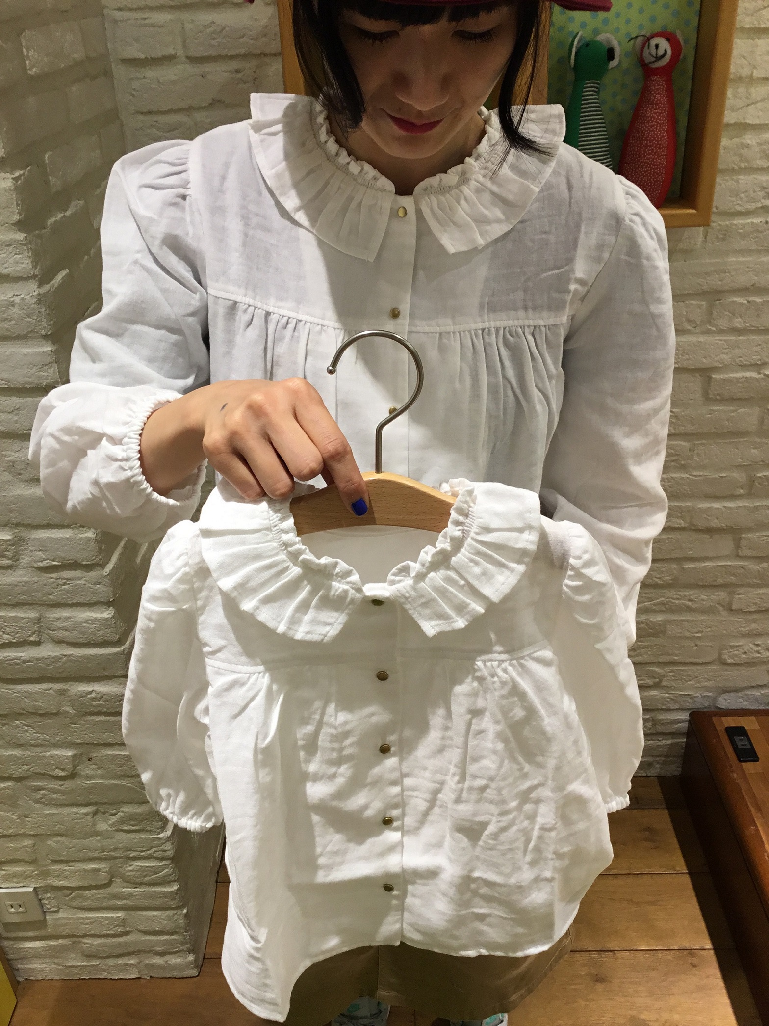 まずは、GIRLSの新作シャツ。 ガーゼ素材で、前後どちらでも着ていただけます。 80cm-150cmまでのサイズ展開。 (STAFF岡 157cm) 150cm着用。