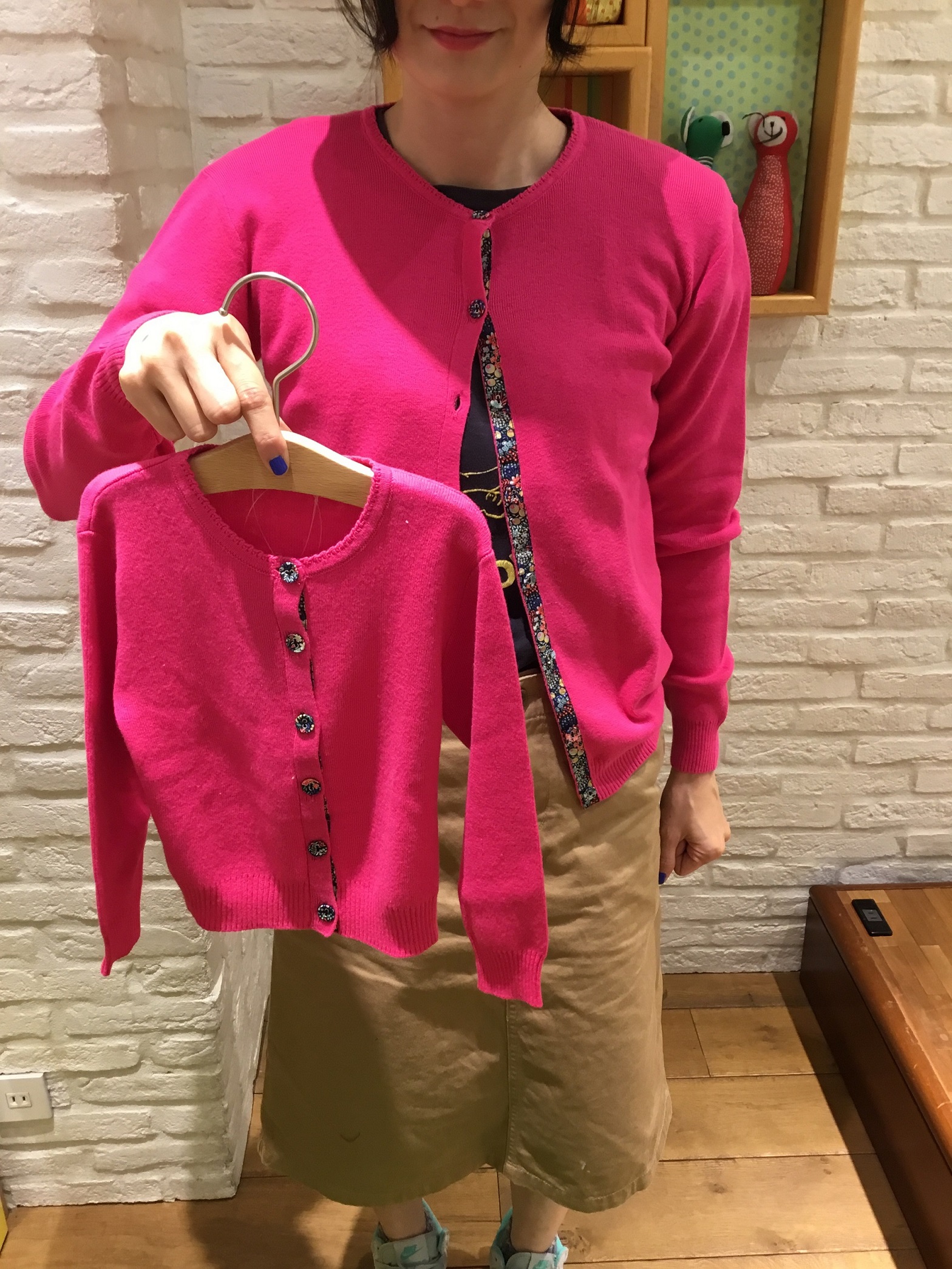 続いて毎シーズン人気のリバティーカーディガン。 80cm-150cmまでの展開 今回は、ピンク、グレー、イエローの3色展開。