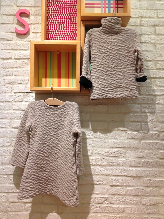 WOOL  ONE PEACE  100cm~120cm        ¥17.000(+TAX) WOOL  L/S  TEE    100cm~120cm        ¥12.000(+TAX) 外側はウールですが、内側には伸びのよいカットソー生地が付いているのでチクチクしません。ロングスリーブは、タートルネックの部分までしっかりカットソーが付いています。