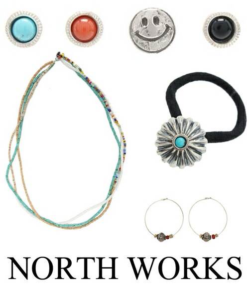 NORTH cafe & craftでブランド創業者の橋本毅と一緒に物作りをしていた職人4人が独立してスタートしたブランドがNORTH WORKS。 NORTH WORKSは創業者である橋本が持っていた技術と意志を受け継ぎ、素材の美しさ、ベーシックなデザインを基本として、変わらない価値を持つモノを作り続ける。1点ずつ手作業で作り上げていく為、それぞれ顔があり、作り手のぬくもりと、何年経っても褪せることのない素材を感じてもらえるアクセサリーをコンセプトとしているブランド。