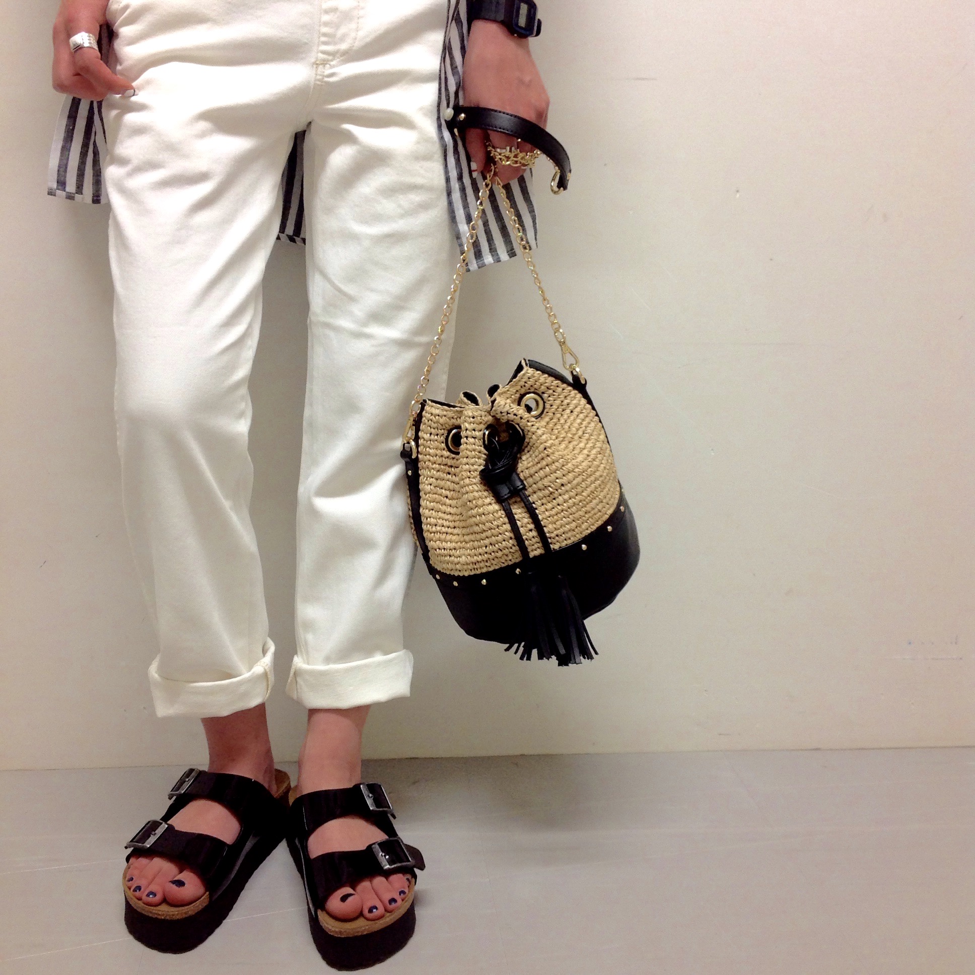 白ベースのモノトーンで春らしく。 黒は差し色で取り入れて大人なスタイリングに。