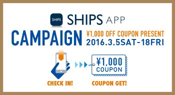 そしてただいま、、、、西宮ガーデンズでは 3月5日(木)~18日(金)の期間、SHIPSアプリでチェックインすると、 4月1日(金)に¥1,000オフクーポンをプレゼント!! クーポンは¥10,000(+TAX)以上のお買い上げでご利用いただけます。