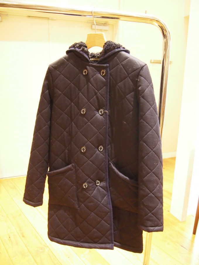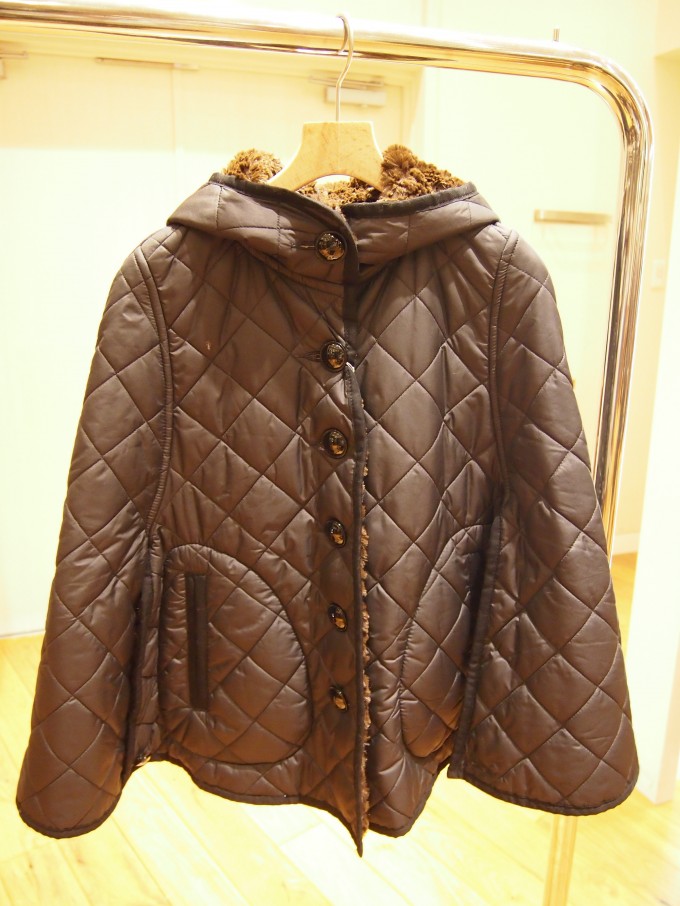 MACKINTOSHのキルティングコートは ポリエステル素材100%の美しいシルエットの大人アウター!!! マットな質感の表地と、高級感溢れるボアは 袖裏、フード、ポケットの裏側まで施されています。