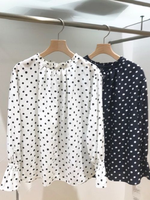 襟にはリボン、お袖は今季もトレンドのフレアースリーブです。