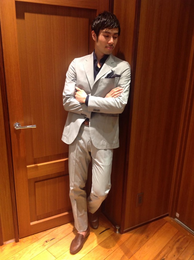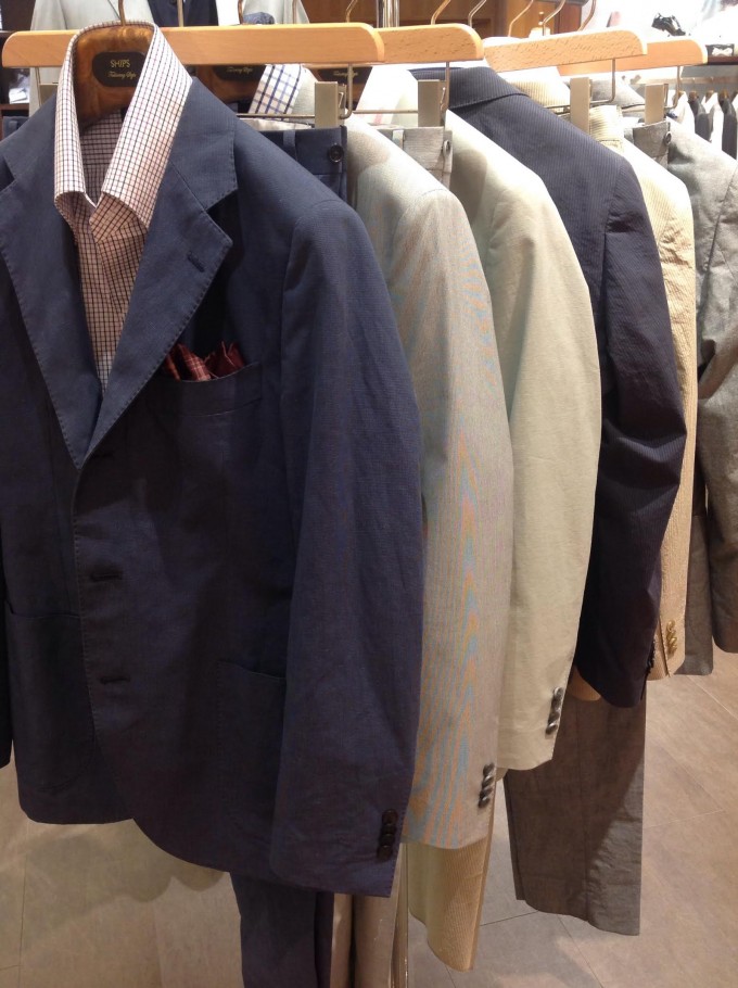 セットアップのバリエーションです。 綿100%のもの、綿に麻をブレンドしたものや シアサッカーなどご用意しております。