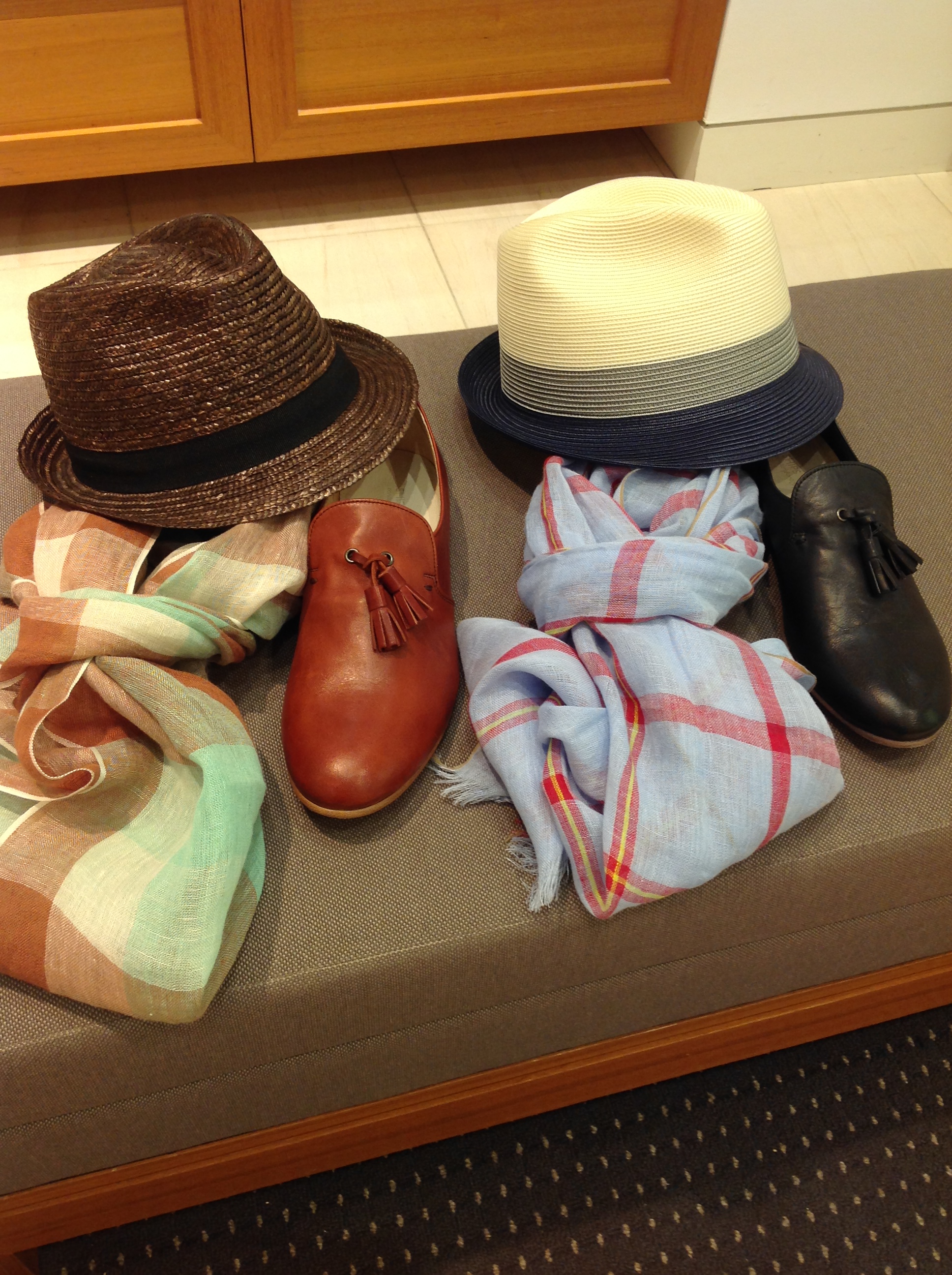 足元は人気のホースレザーシリーズのタッセルローファーです。 一足先に夏のスタイルはいかがでしょうか。 ぜひ店頭にてお待ちしております。