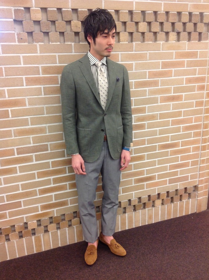 足元は軽快にローファーで合わせています。 ぜひ一度店頭にて着心地を確認してみてください。