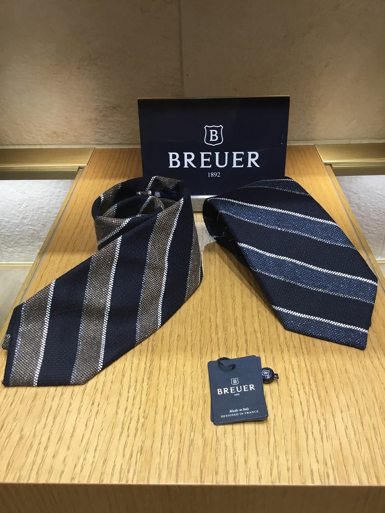 という訳で、季節も変わり、ネクタイを締めれる気候となりました。 今回、ご紹介させて頂くのは、ネクタイのブランド『BREUER』です!!