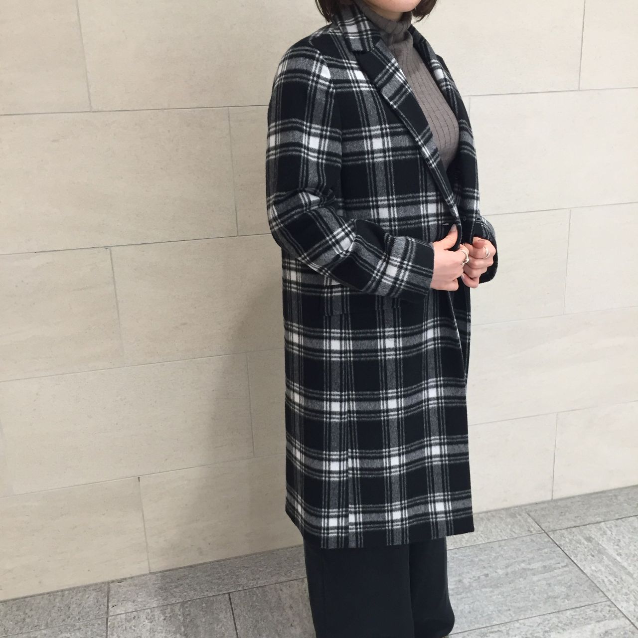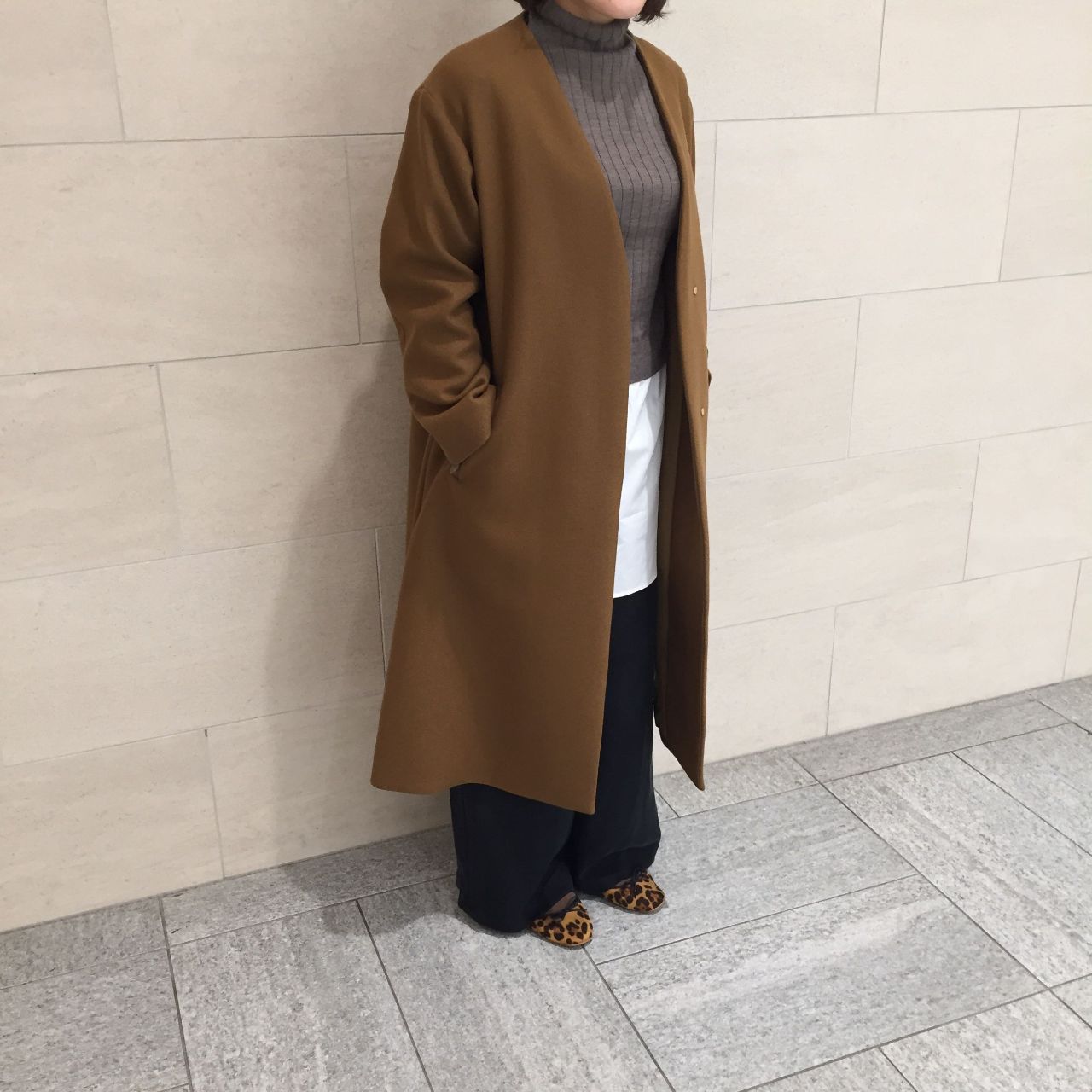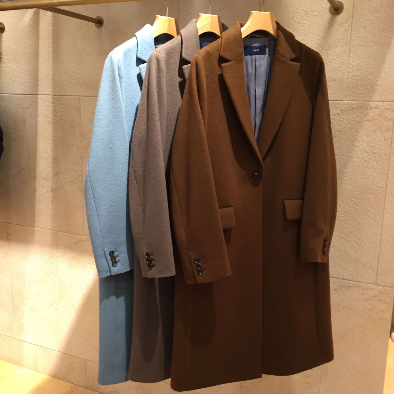 毎年定番のチェスターコートですが、今年は襟の返りを深くし、ラペルがシャープ見えするようにしているのでフェイスラインがすっきり見えます!通勤にもおすすめですよ~!