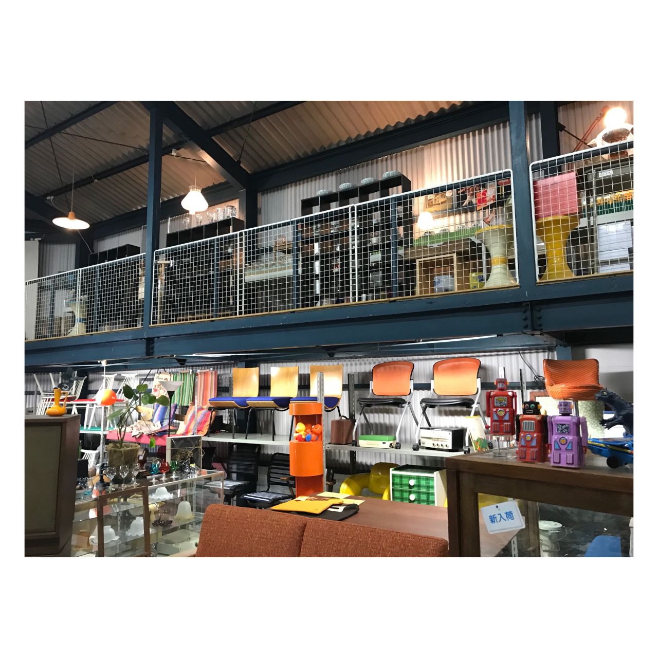 60s〜のビンテージ雑貨やレトロな家具が広い倉庫内にビッシリ!