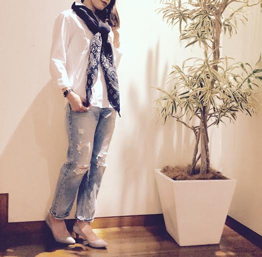 ストールにシャツ、パンプスと合せて