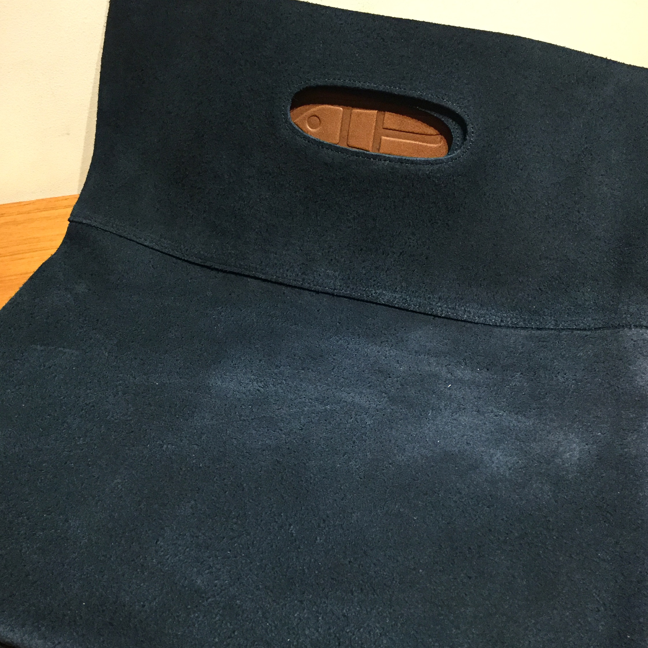 デニムクラッチバック。 これも端っこはスエードを使われている長く使う分には優れているハイスペック。 ¥11,000(+TAX) ただお互いに言えるのは、汚れとか気にせずガシガシ使って頂きたいです。 水に濡れようがコーヒーの染みが付こうが、それはそれで自分自身の味それを嫌がらずに愛着持って使っていただきたいです。