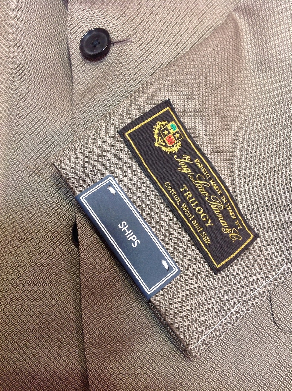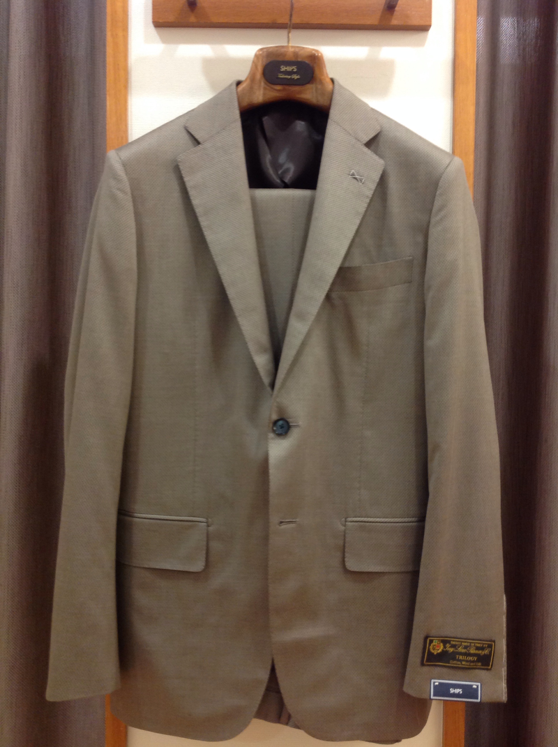 そして最後はシップス定番スーツ、ウール/シルクのシャークスキン柄スーツです。