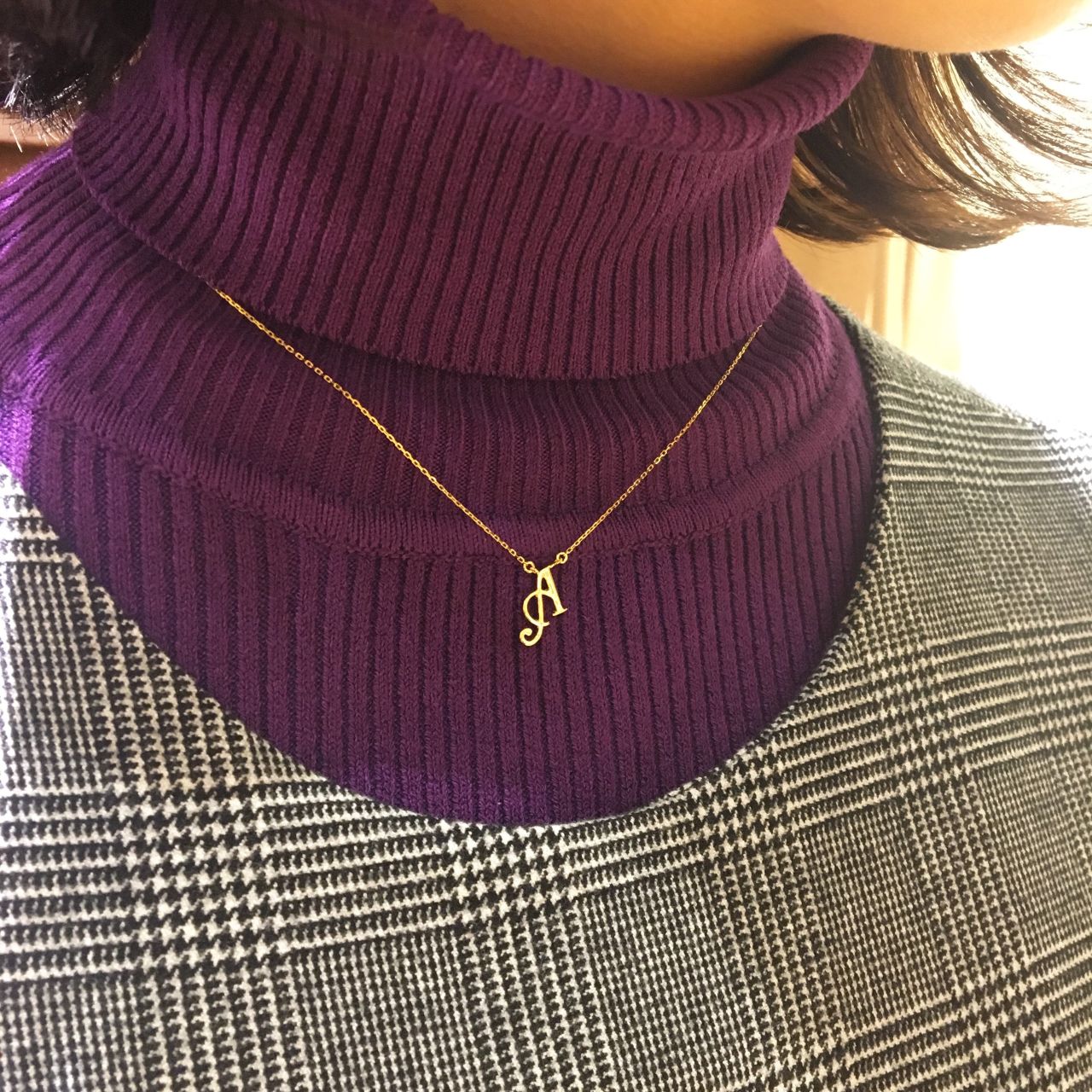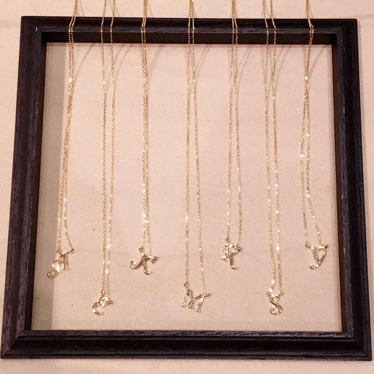イニシャルネックレスは存在感がありつつ、どんな服にもマッチします。
