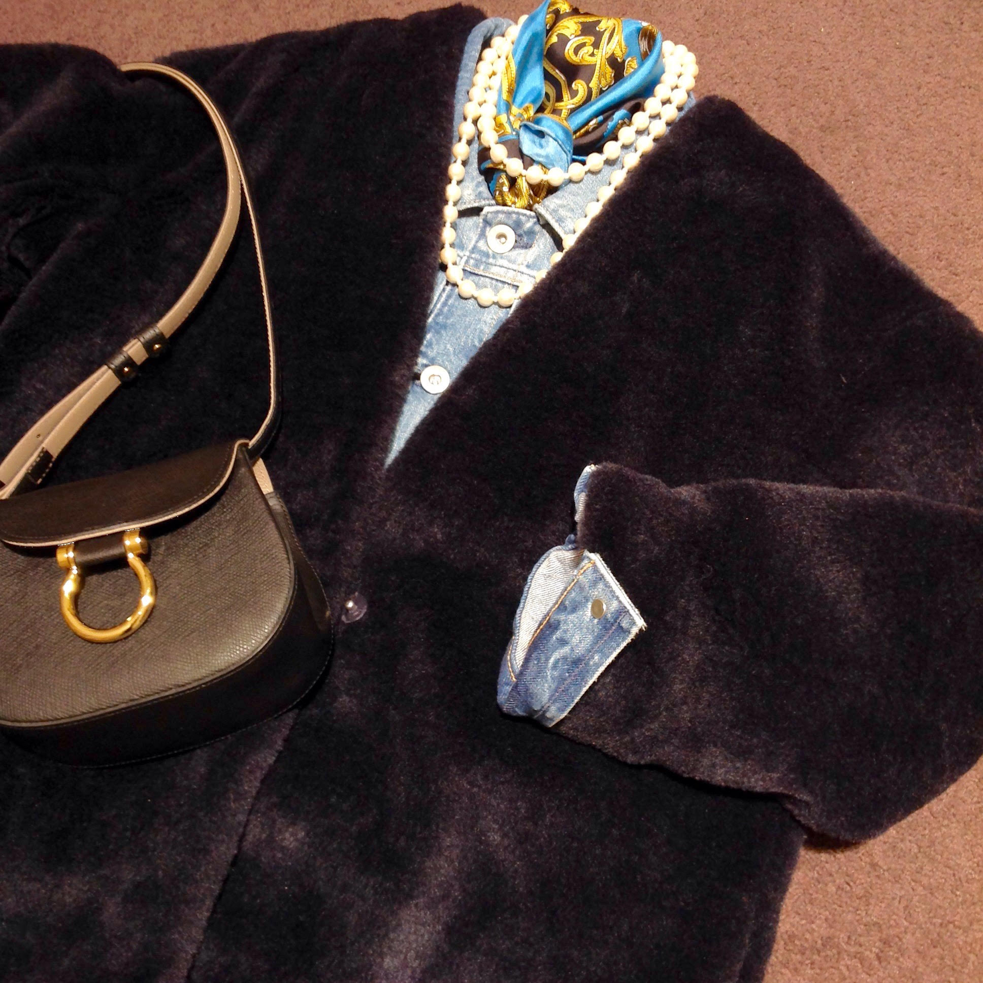 JACKET:314-04-0154 ¥28000(+TAX) upper hights SCARF:318-24-0149 ¥11000(+TAX) MANIPURI NECK LACE:319-22-1055 ¥7000(+TAX) POCHETTE:310-04-0439 ¥23000(+TAX) VIORADORO デニムジャケットをインナーに、スカーフやパールの小物でアクセントを効かせた上品スタイル。