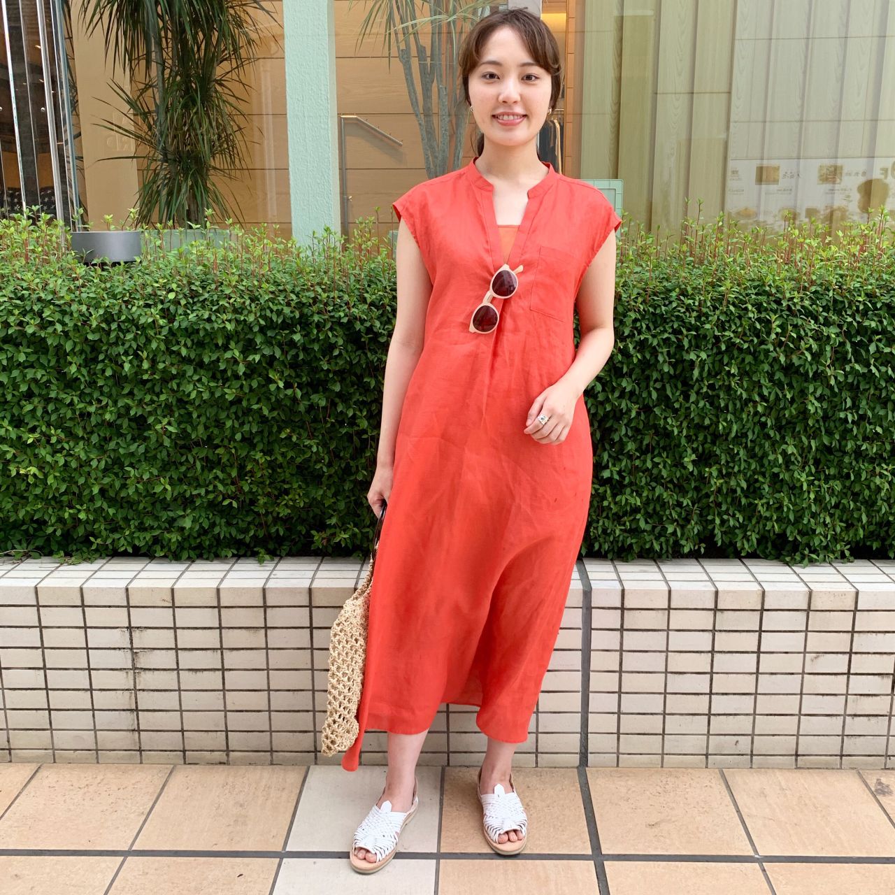 私はお出かけ用に夏の暑い日にもさらっと着れる、リネンのワンピースと合わせてみました。